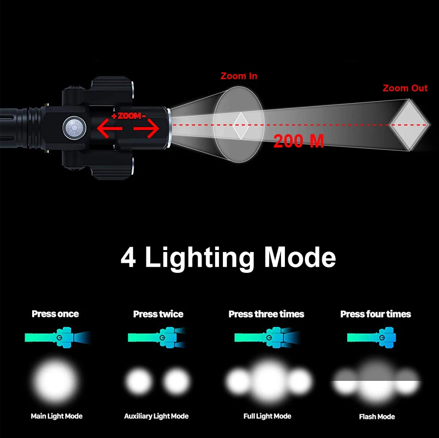 8. 4 режима регулируемой яркости: 1led-2led-3led-вспышка