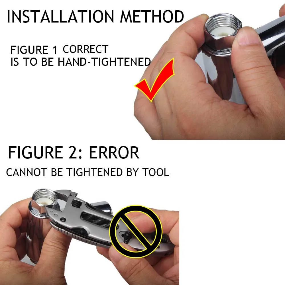 Простая установка: 1/2 дюймовая гайка, совместима с большинством душевого оборудования, легко устанавливается без какого-либо инструмента.