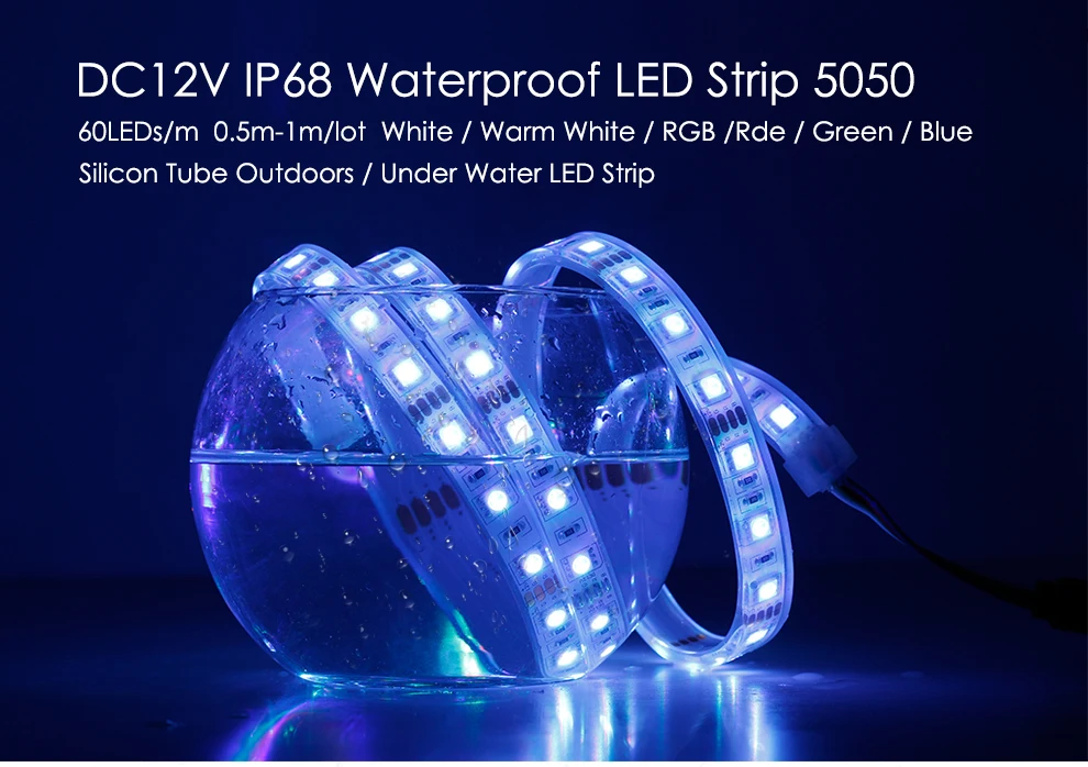 IP68 Водонепроницаемый 5050 Светодиодные ленты 12V 60LED/м белый/теплый белый RGB, Применение под водой во время плавания
