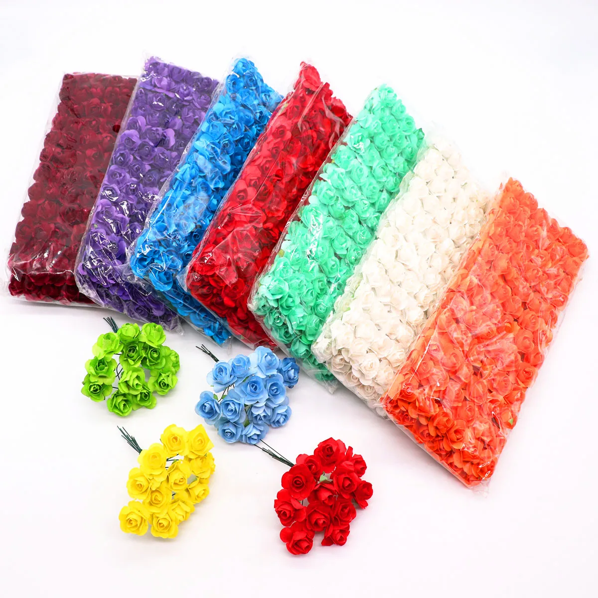 144 шт. 2 см мини-букет из искусственных роз пены разноцветные розы свадебные цветы