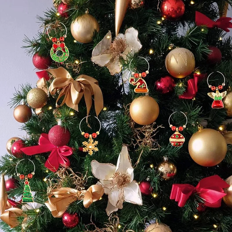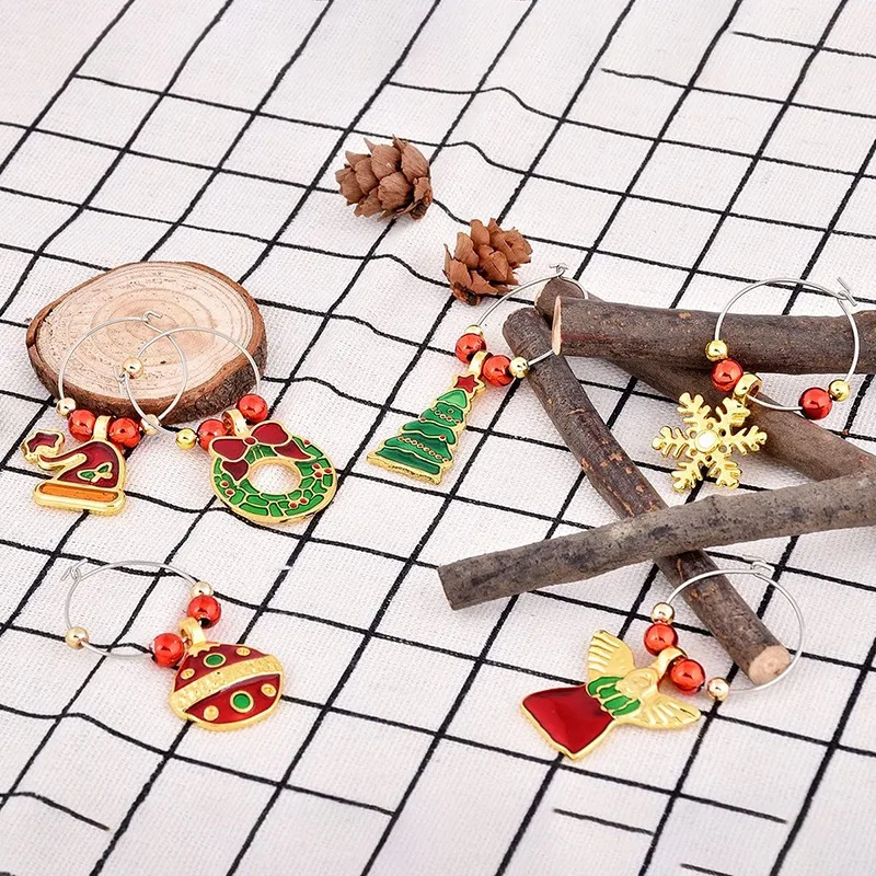Бокал для вина, набор из 6 коктейльных маркеров, бирки, бокал для шампанского, рождественские украшения