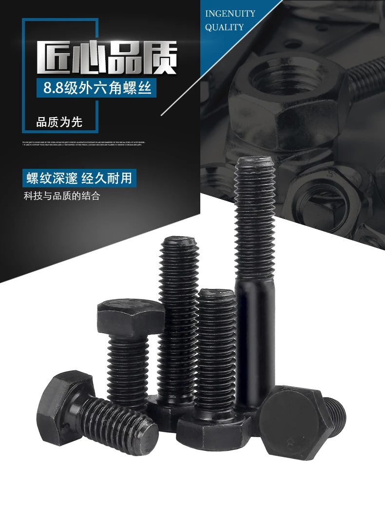 M30 Hexagon Head Screws Threaded Up To The HeadBlack 8.8 Carbon SteelExternal Hex Head BoltsDIN558/DIN933/ DIN961/ ISO4017 ISO4018/ GB/T5781/5783/5786Factory Wholesale
