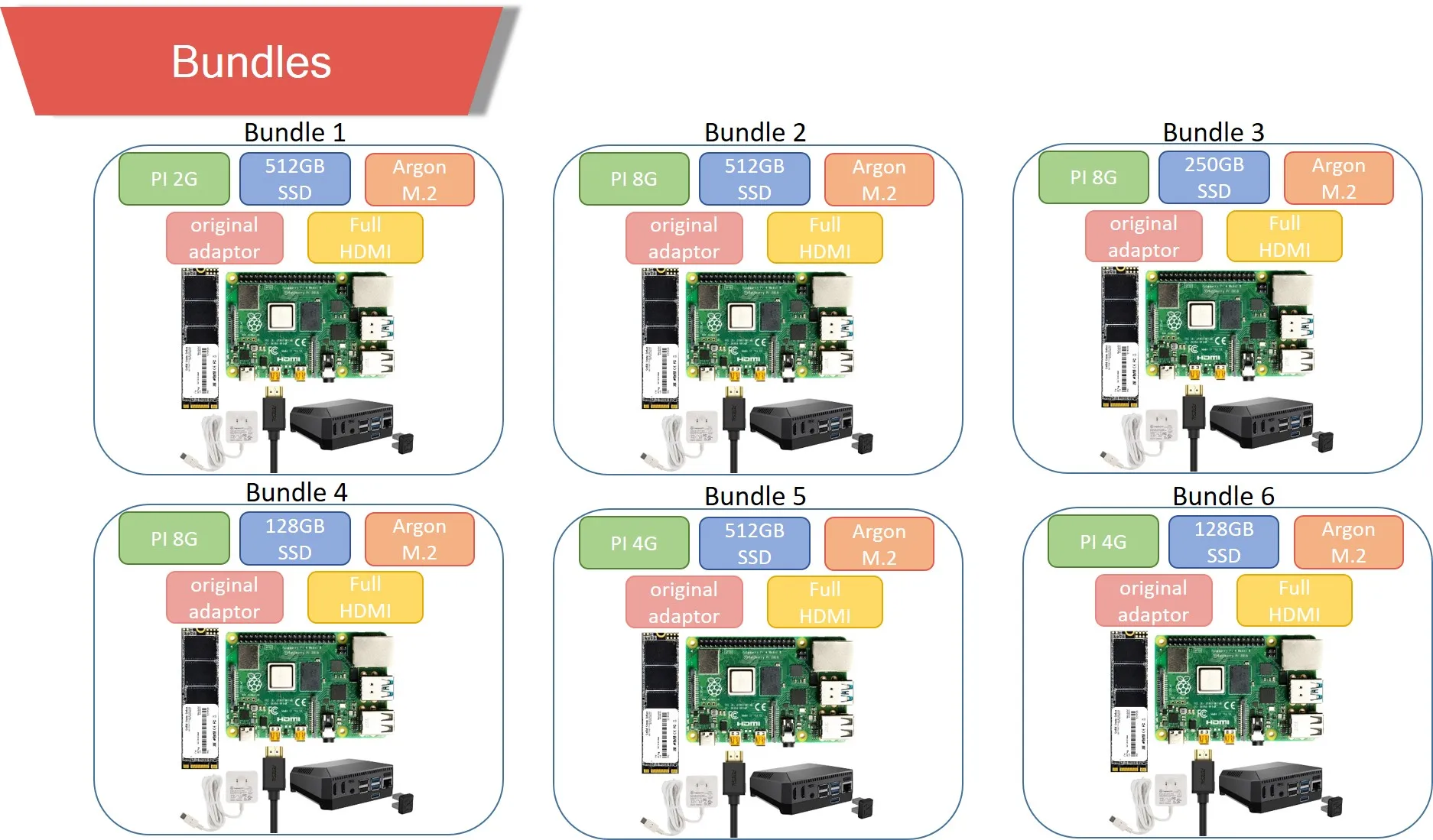 Bundle1:Pi 2 ГБ + 512 ГБ SSD + Argon M.2 + оригинальный адаптер + Полный HDMI