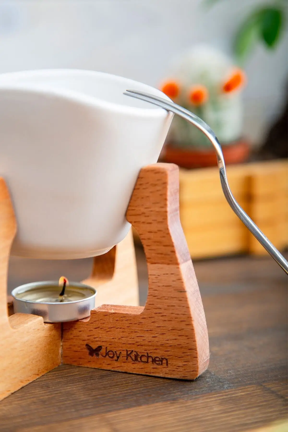 1 adet porselen fondü kabı, 1 adet fondü çatalı ve 1 adet tealight kullanımlı ahşap stand bulunmaktadır. Ahşap kayın ağacından yapılmıştır. Uzun süreli kullanım için temizliğinin nemli bezle yapılması önerilir. Ürün bilgileri Taban genişliği: 12 cm Tavan genişliği: 17 cm Tüm ürün yükseklik: 14 cm 1 adet kaliteli tealight mum hediyeli