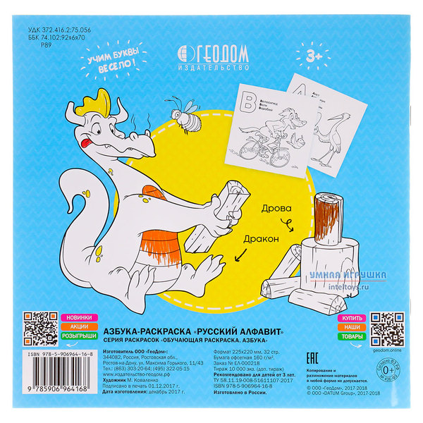 Увлекательные занятия с азбукой развивают речь, умственные способности, память и воображение. Малыш запоминает написание и звучание букв, тренирует слуховое восприятие, точность движений и мелкую моторику рук. Пособие помогает освоить азы чтения и готовит непоседу к школе.