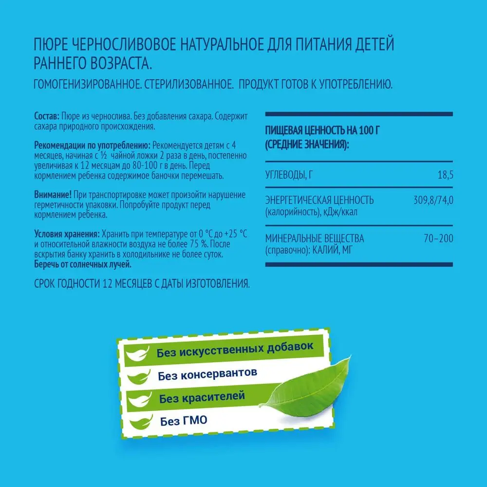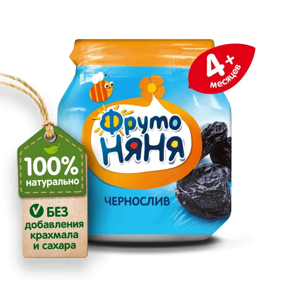 ФрутоНяня пюре черносливовое натуральное для питания детей раннего возраста. Гомогенизированное. Стерилизованное.