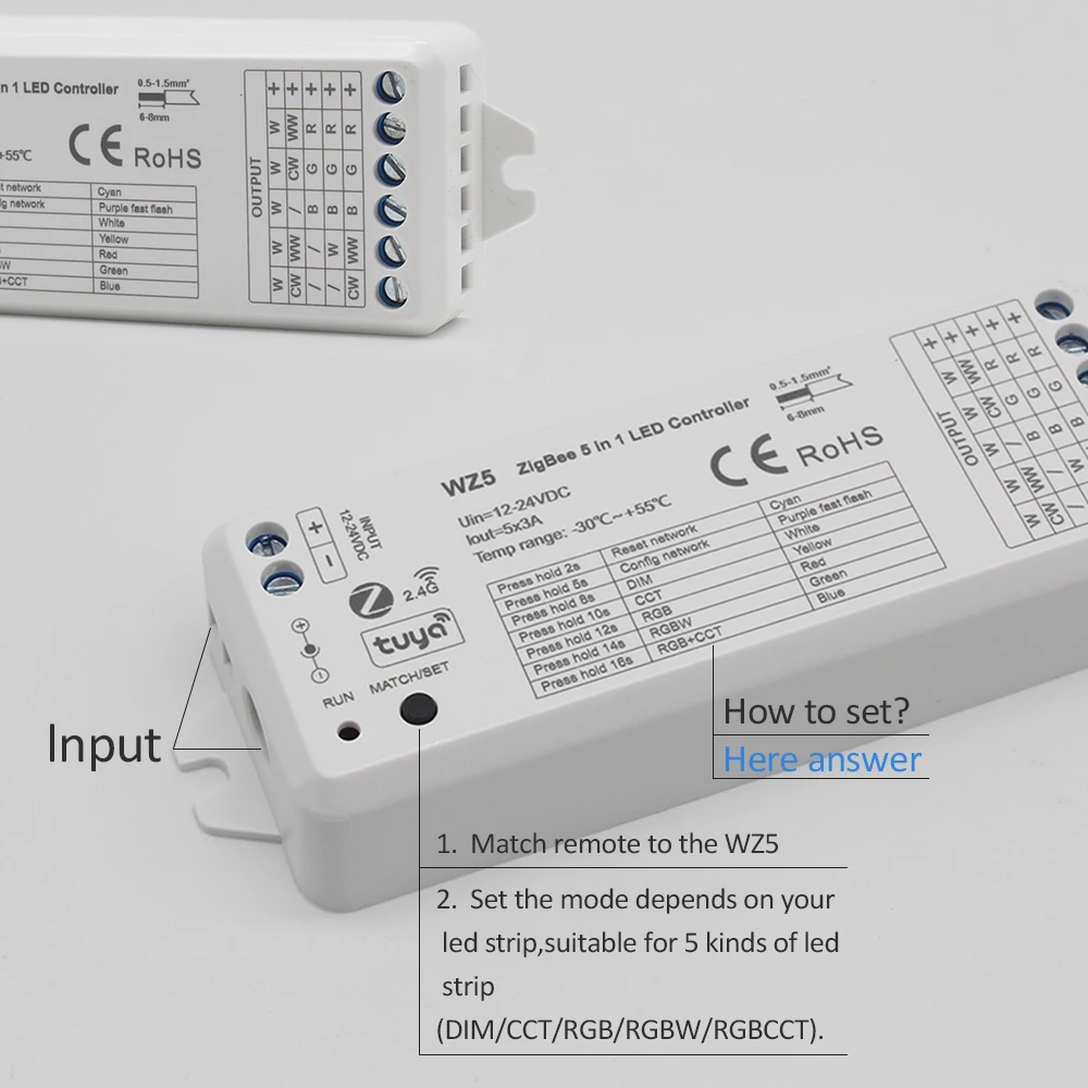 Он используется для 5 видов различных светодиодных лент-светильник,-Одноцветный, CCT, RGB, RGBW, RGBCCT светодиодный ленточный светильник.