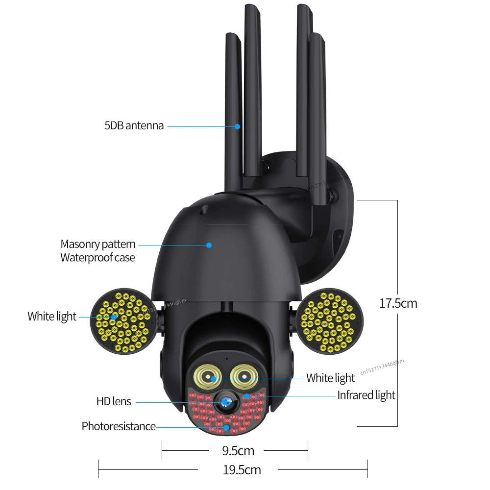 ◆ Простота установки и использования, подключи и работай ◆ Просмотр видео в любое время, в любом месте, Поддержка основных терминалов и сетей ◆ Четкий и плавный просмотр видео, Интеллектуальная передача для воспроизведения лимита сети ◆ Обновление онлайн прошивки, синхронное обновление функции и физический осмотр ◆ Поддержка двустороннего голосового домофона, использование обработки сигнала несущей категории (отключение echos, подавление шума, выравнивание голоса, удобный шум, подавление звука). ◆ Поддержка Android, IOS, NVR, PC smart terminal удаленный мониторинг в реальном времени ◆ Обнаружение движения, связь фото/видео; Мобильный телефон сигнализация и другие способы уведомления ◆Умный двойной светильник ночного видения: инфракрасное расстояние 30 метров, белый светильник 20 метров ◆Интеллектуальный чувствительный светильник для человека: в пределах 10 метров, в зависимости от яркости окружающего светильник, автоматически распознавать людей, транспортных средств, кошек и собак в пределах 27*27 метров, И включите белый светильник ing соответственно ◆ Поддержка технологии облачного хранения, micro sd-карта (до 128 ГБ) ◆ Поддержка 2,4G WIFI (IEEE802.11b/g/n) умная конфигурация ◆ Поддержка дистанционного управления PTZ (по горизонтали: 355 ° и по вертикали: 90 °) ◆ 4 антенны 5 дБ, 35 инфракрасных ламп, 92 белых ламп