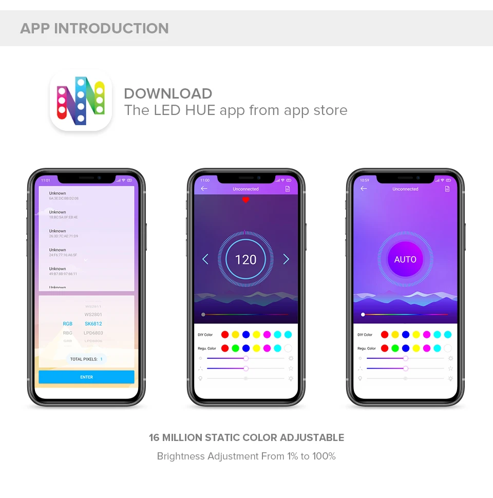 Тип светодиодный: WS2811 5050 SMD (адресуемый светодиодный).
