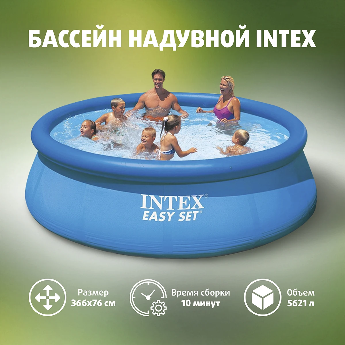 Модель легко и быстро устанавливается без применения технических средств. Весь процесс сборки бассейна до наполнения водой занимает 10 минут. Перед применением бассейн раскладывается на ровной поверхности без острых предметов (стекло. камни, ветки и т.п.). При помощи насоса накачивается верхнее кольцо. Всё! Бассейн готов к наполнению водой. Борта поддерживаются надувным кольцом, которое, по мере заполнения бассейна, поднимается вместе с уровнем воды, расправляя стенки.