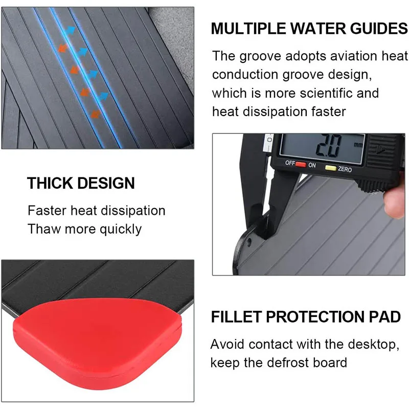 Контактируя с пищей, используя специальные экологически чистые материалы и процессы, замороженная еда быстро размораживается, чтобы очистить! Специальный процесс делает пластина для разморозки легкой в чистке, антипригарное масло, проста в использовании, экономя электричество и защищая окружающую среду! Нет необходимости в других инвестициях, экономия воды и электроэнергии принцип: пластина для разморозки-это специальный сплав с теплопроводностью в 20000 раз больше, чем у обычных металлов, осуществляющий высокоскоростной теплообмен, позволяет замороженной пище «достичь самого быстрого естественного эффекта таяния преимущества: скорость, короткое время, может эффективно сэкономить время, И может поддерживать оригинальный вкус и питание продуктов питания, здоровья и гигиены. Устойчивость к коррозии, длительный срок службы: из-за использования специальных материалов для защиты окружающей среды, цена будет немного выше тарелка для разморозки-тарелка для разморозки по сравнению с другими оттаивания методы размораживания скорость при использовании быстрого размораживания пластина 5,6 раз больше, чем оттаивания скорость общей керамических изделий. Примечание: Керамические изделия размораживаются в течение примерно 91 минуты, а быстроразмораживаемая тарелка размораживается в течение примерно 16 минут, быстро размораживаемая тарелка, питание и соус могут быть прочно закреплены в мясе, уменьшение перелива сока при размораживании пищи и сохранение ее привлекательности