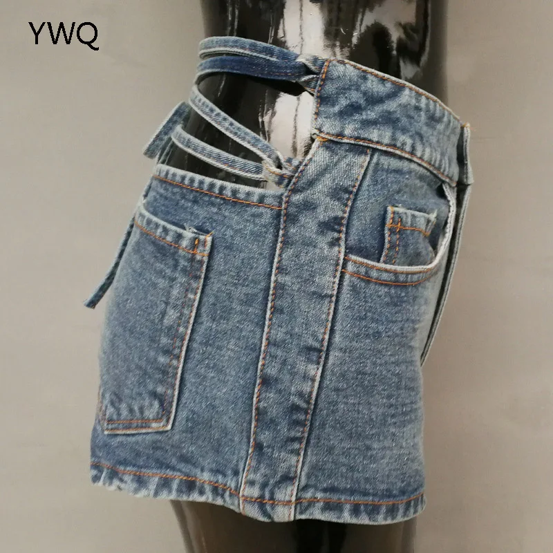 Женские джинсовые мини-шорты YWQ, летние модные однотонные джинсовые вечерние шорты с бантом на шнуровке и высокой талией