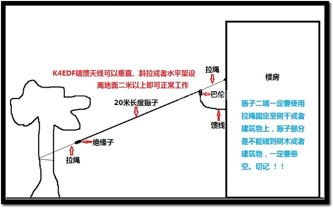 7 МГц 14 МГц 21 МГц 28 МГц четыре диапазона, стоячая волна меньше, чем 1,5, выдерживают мощность 100WPEP, балун пропуск частиц меньше, чем 1.5DB, принимает вибратор 2,5 квадратных миллиметров, чистая медь многожильный провод (с защитой от УФ лучей используется для долгосрочной перспективе наружного монтажа в любую погоду), Антенна Длина составляет около 20 метров.