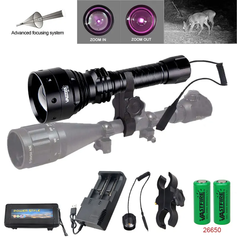 1x IR850NM фонарик ночного видения 2 батареи 26650 1x USB зарядное устройство
