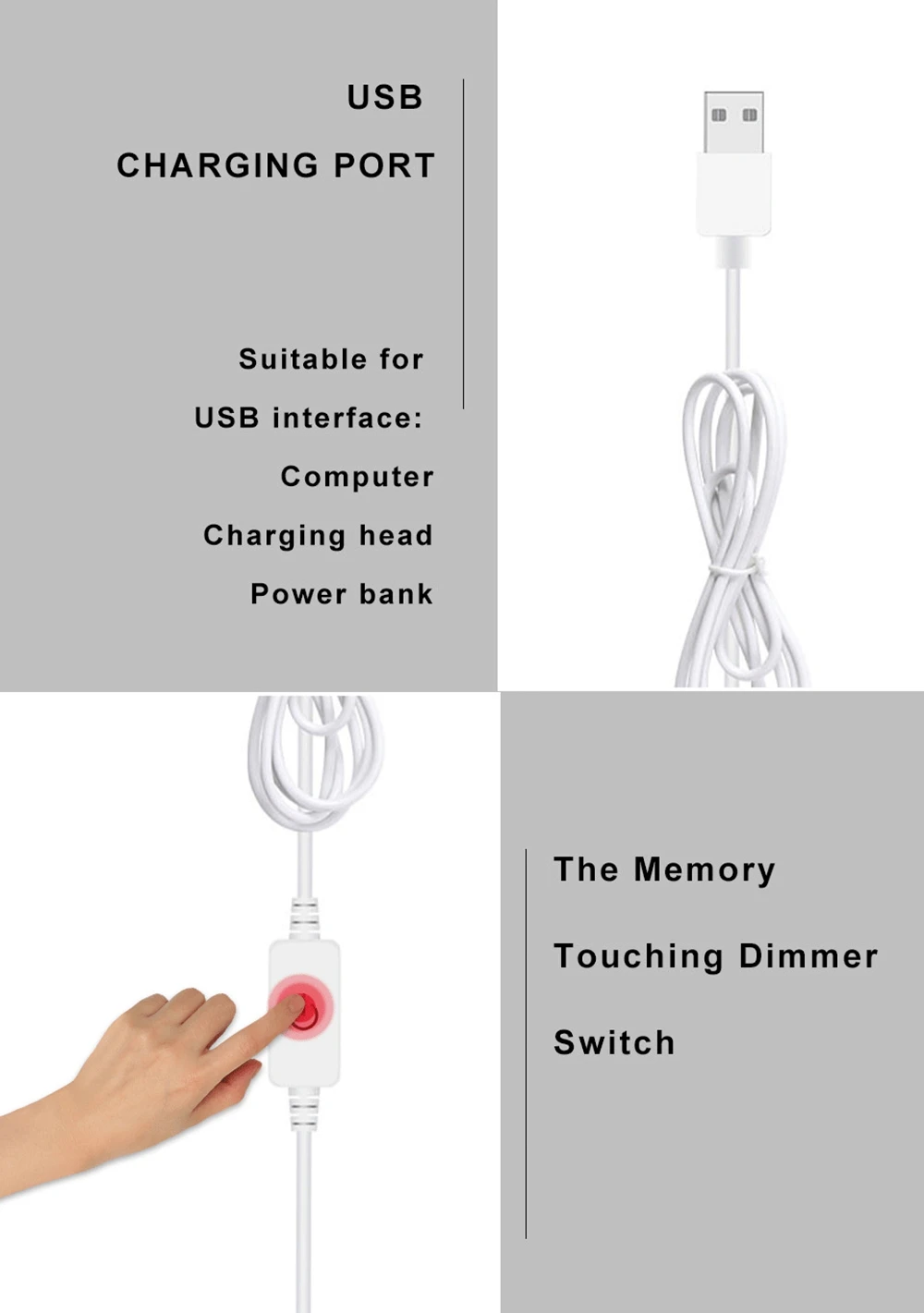 * Usb-порт, лампа-светильник и источник питания могут быть подключены через USB многими способами, такими как ноутбук, Мобильная мощность, розетка, поэтому он очень удобен в использовании.