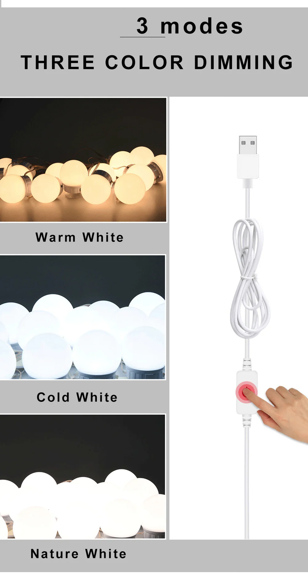 Совет:Лампа vanity mirror поддерживает несколько режимов питания, но они не являются батареями.