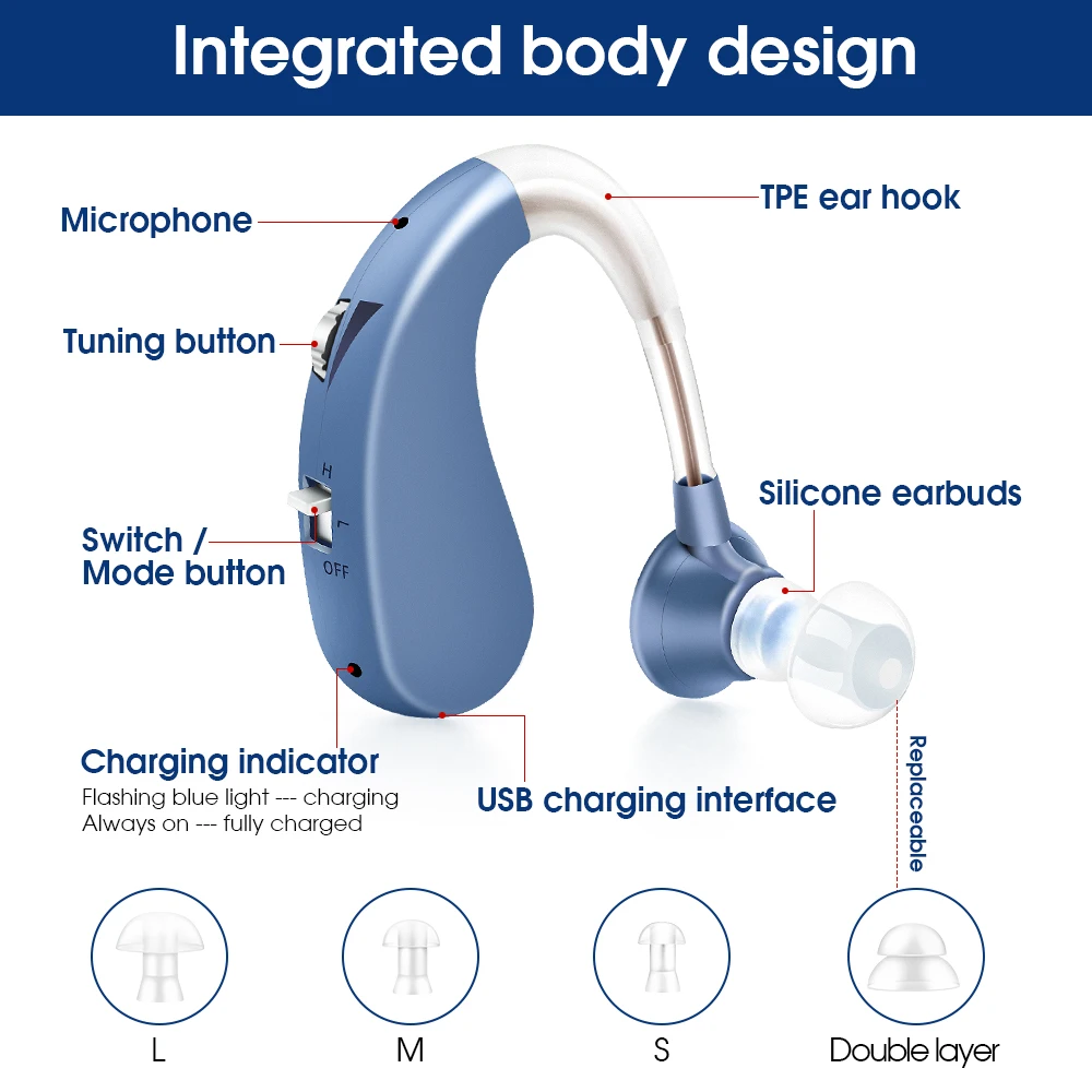 Перезаряжаемый слуховой аппарат, цифровой усилитель слуха для умеренной потери слуха, слуховой аппарат для пожилых VHP-1204B