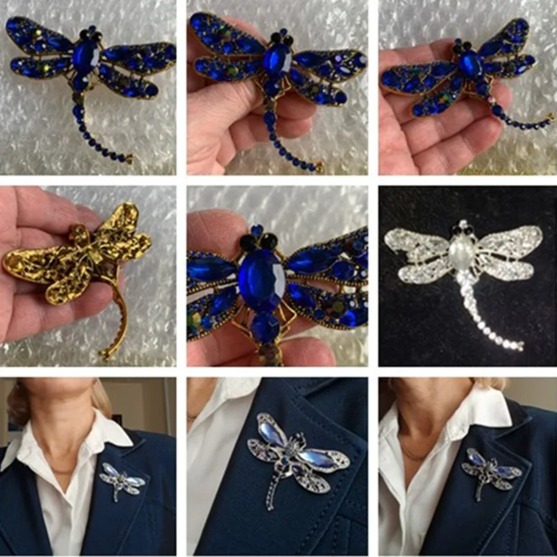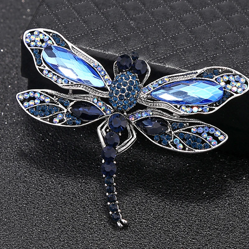 Crystal Vintage Dragonfly Brooches For Women Large Insect Brooch Pin Fashion Dress Coat Accessories Cute Jewelry