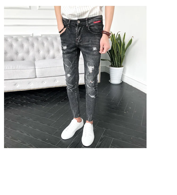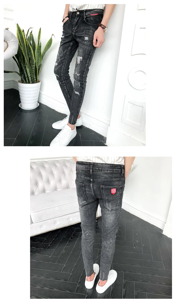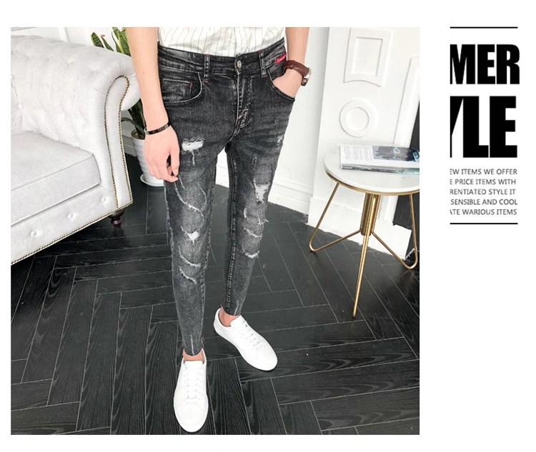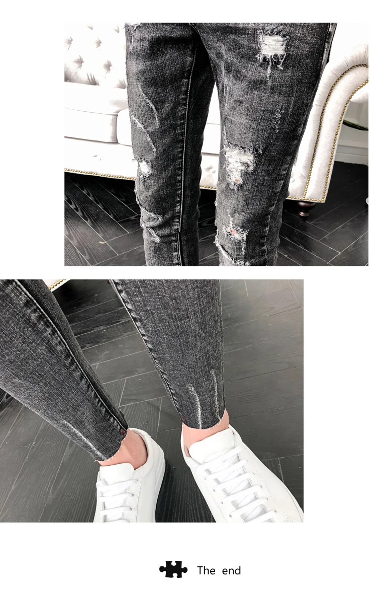 Джинсы мужские винтажные рваные из хлопка с дырками 2019 3XL для лета размера плюс |