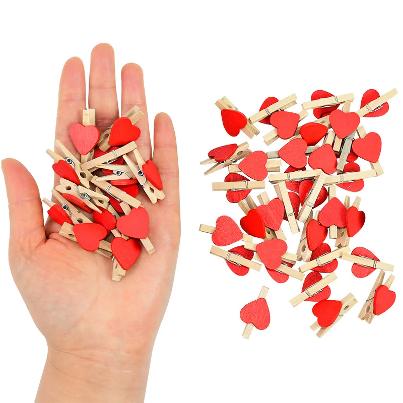 50 шт./упак. красочные мини сердце деревянные прищепки держатели для фото бумаги