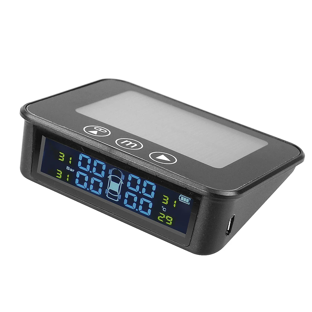 Датчик давления автомобильных шин, Система контроля давления в шинах, солнечная батарея или зарядка от USB, HD ЖК-дисплей, автоматический сигнал тревоги, 4 беспроводных внешних датчика