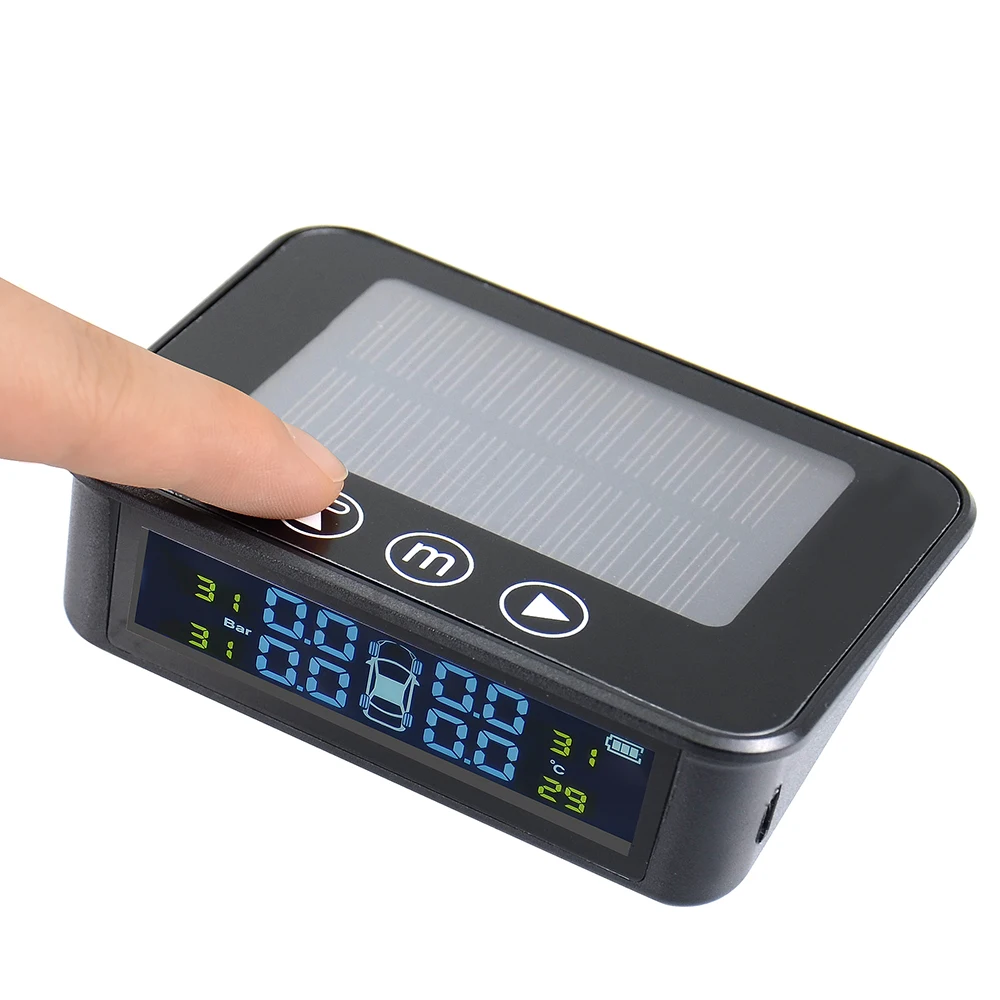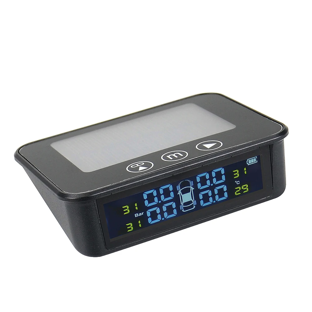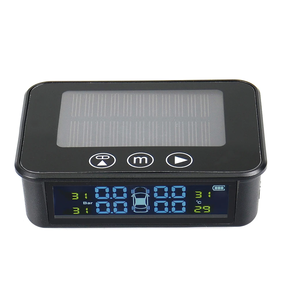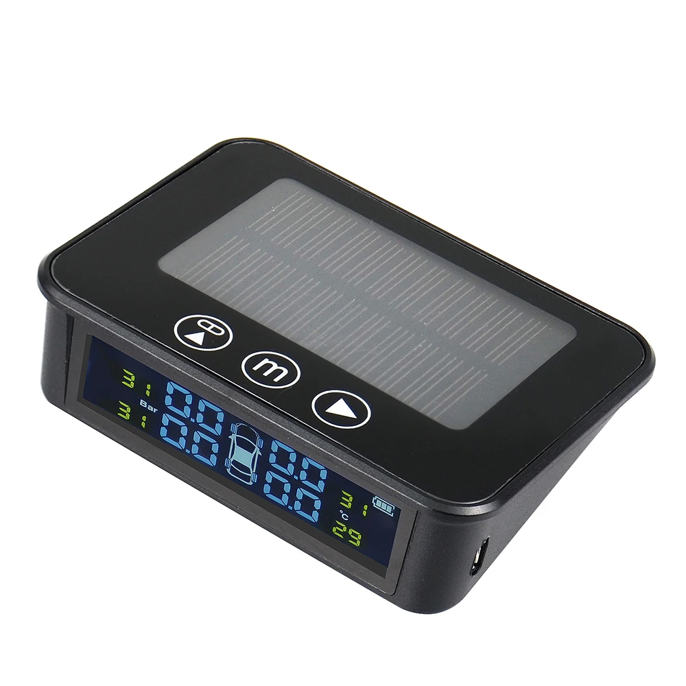 Зарядка от солнечной энергии; Высокое и низкое давление, сигнализация утечки; ЖК-экран, простая пользовательская точность межфасинга, использование импортированных чипов Freescale; Мониторинг давления и температуры в шинах в реальном времени; Умный запуск: парковка автоматически спит, автомобиль начинает автоматически просыпаться. Два блока (PSI / Bar) изменяется, вы можете установить тот, который вам нравится. Сменные батареи для сенсоров