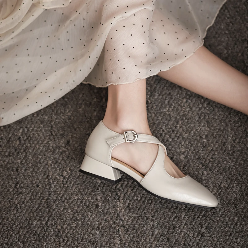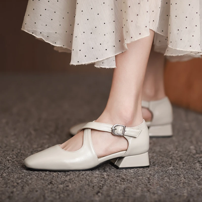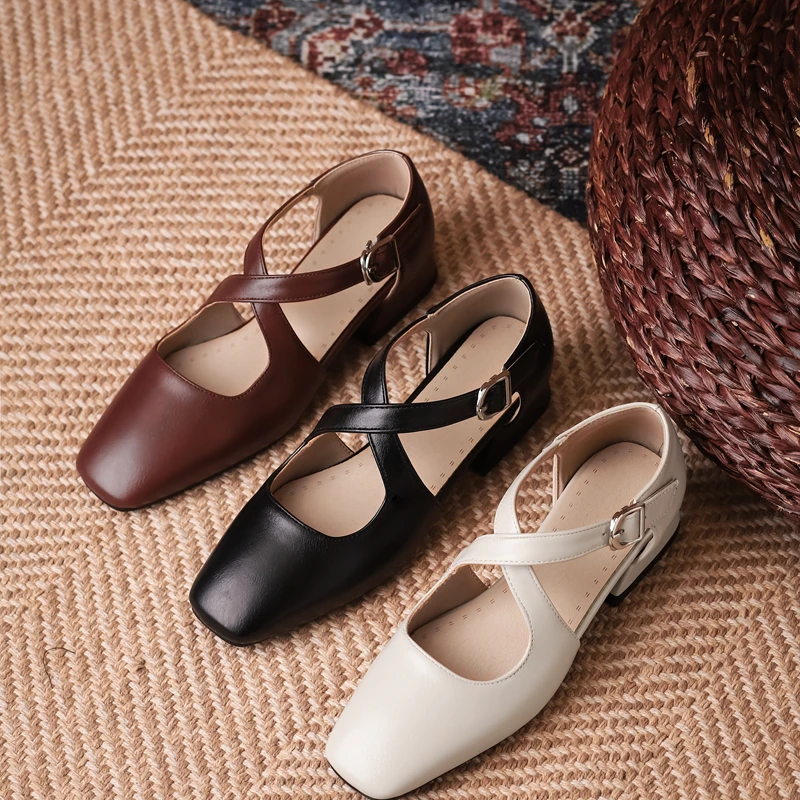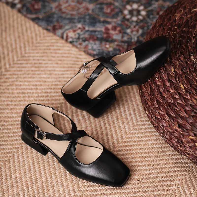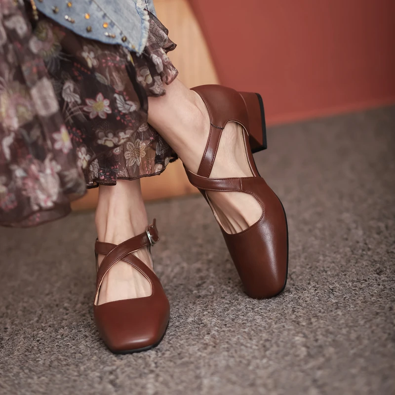 Женские туфли на плоской подошве из натуральной кожи шнуровке с квадратным