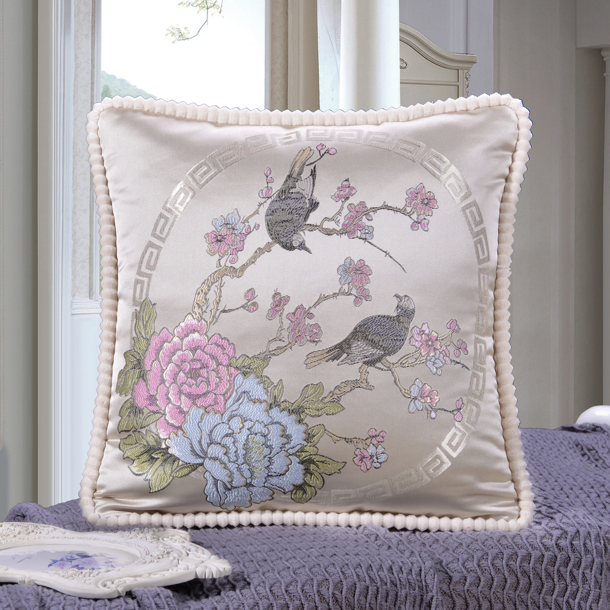 Декоративные подушки с вышивкой цветы и наволочка с птицами Украшение Дома Наволочка украшение для подушки чехлы на подушки для дома 48x48