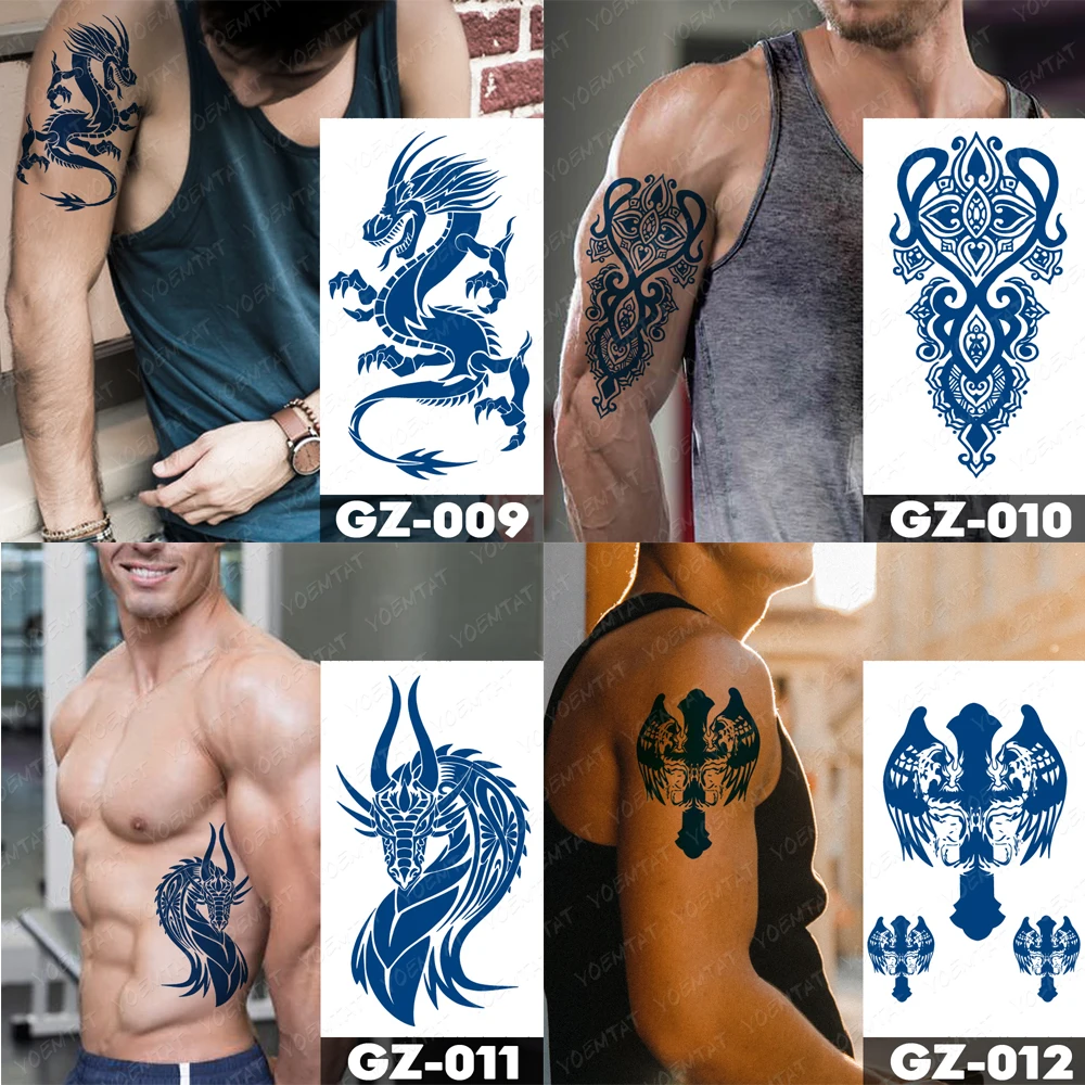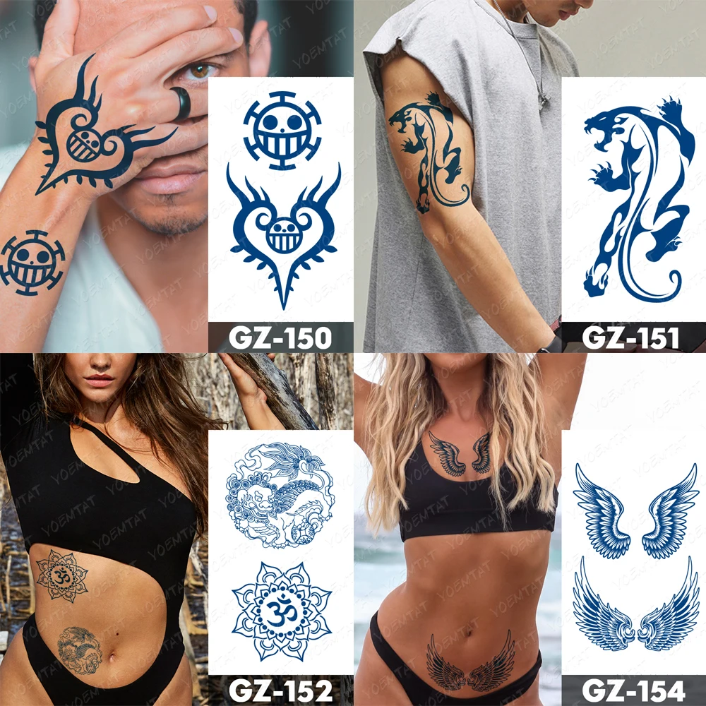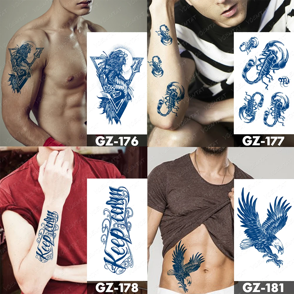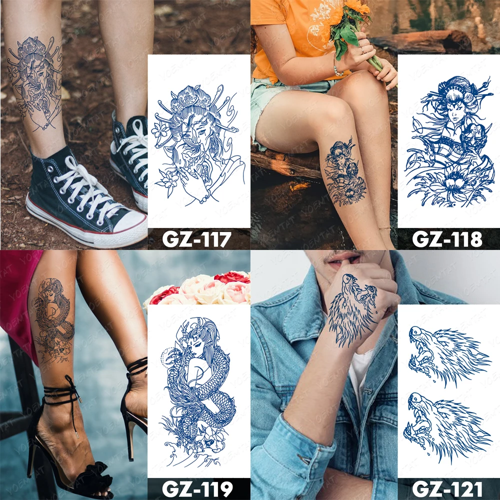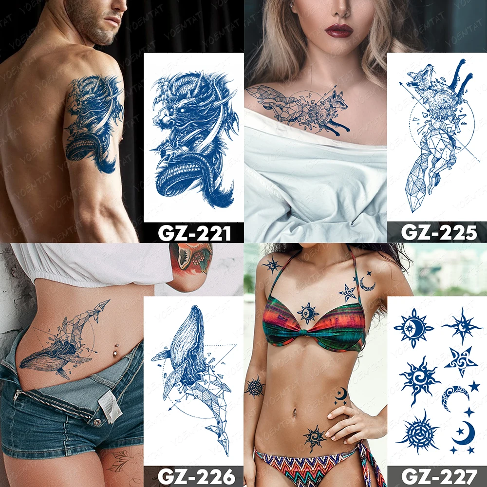 После контакта с кожей, окислительно активированный пигмент будет выглядеть синим и черным, что также является цветом настоящей татуировки. Не бойтесь потереть, это более Реалистичная татуировка на две недели Новые материалы, отличные цвета, более реальные