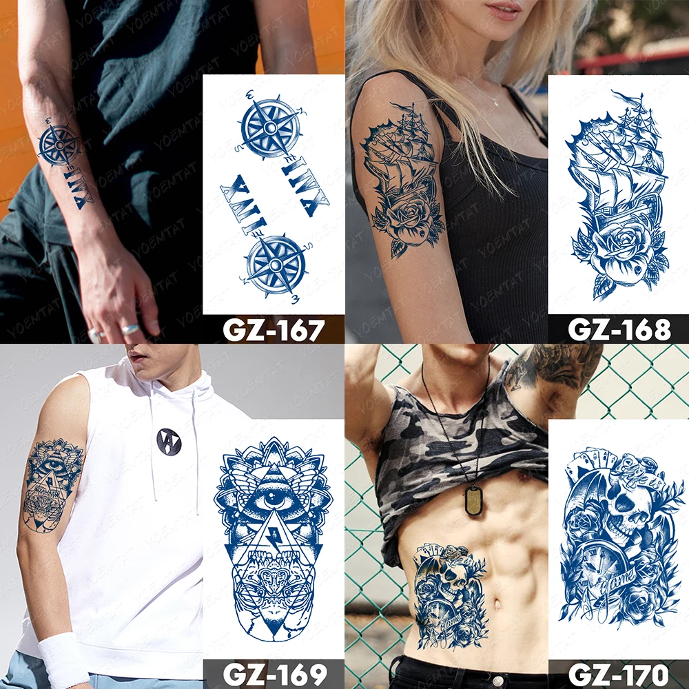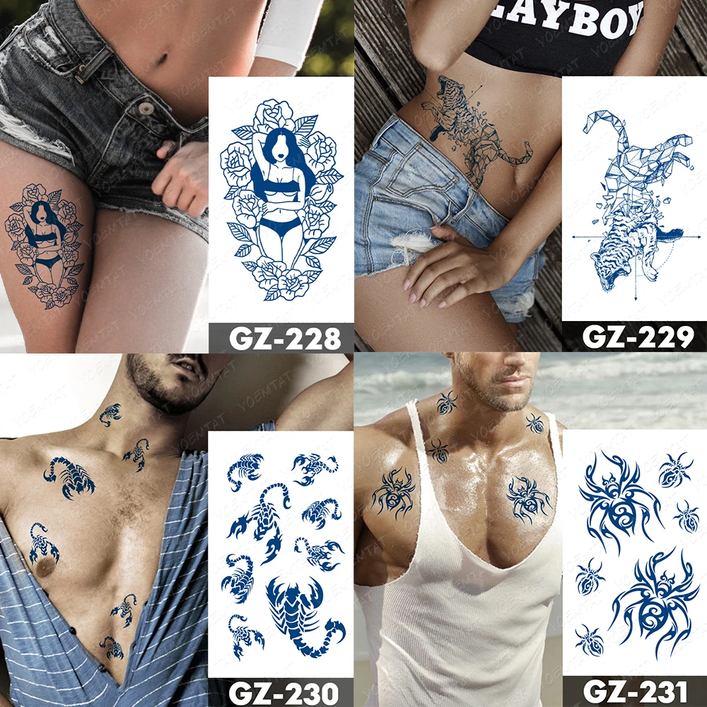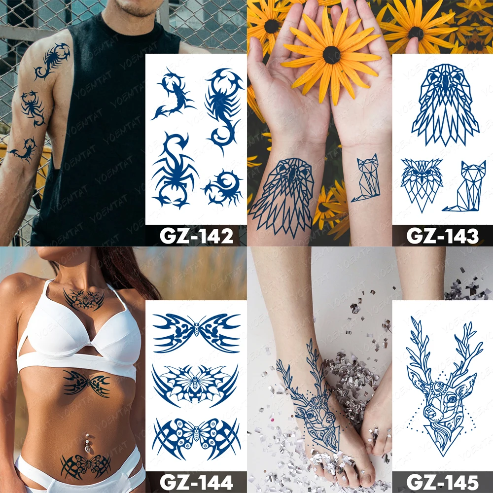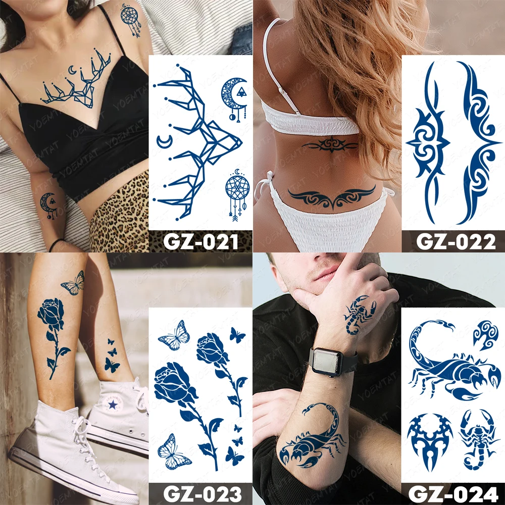 После контакта с кожей, окислительно активированный пигмент будет выглядеть синим и черным, что также является цветом настоящей татуировки. Не бойтесь потереть, это более Реалистичная татуировка на две недели Новые материалы, отличные цвета, более реальные