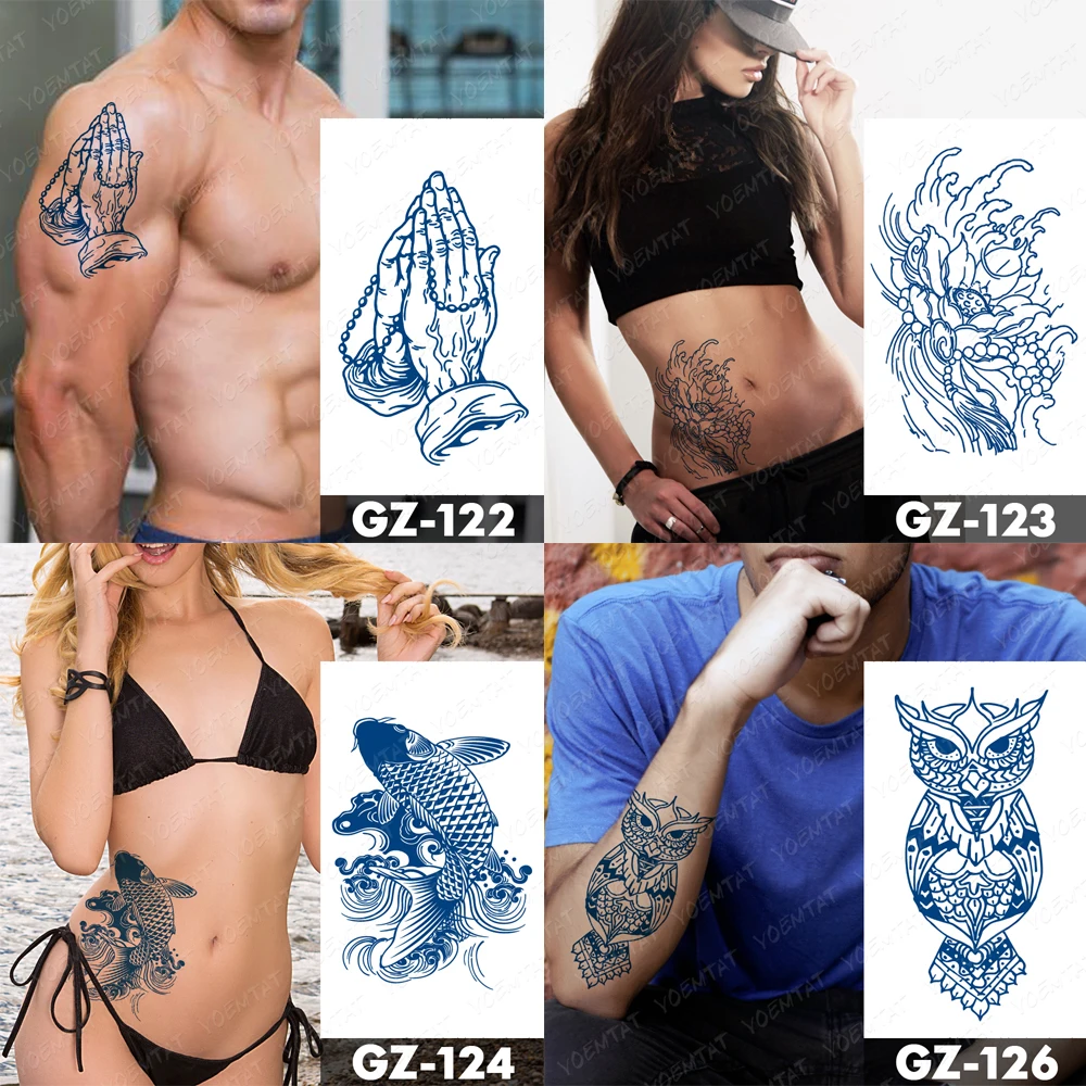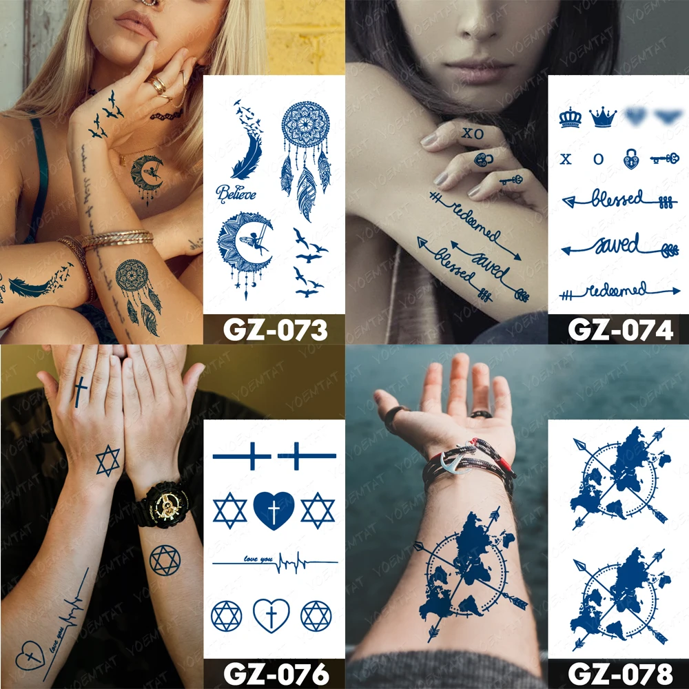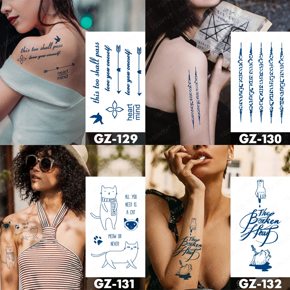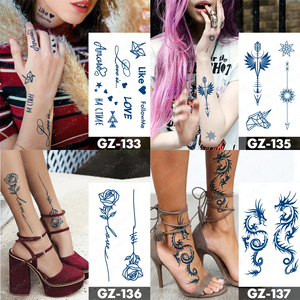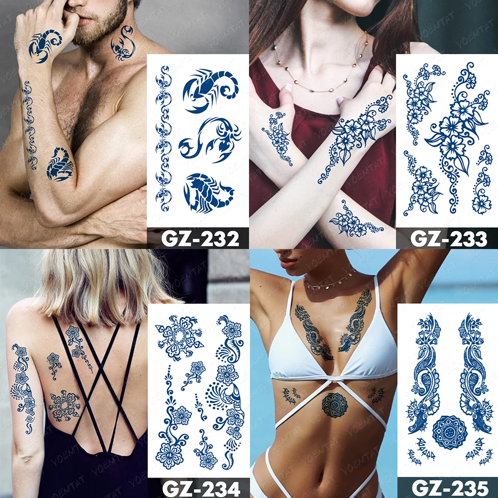 После контакта с кожей, окислительно активированный пигмент будет выглядеть синим и черным, что также является цветом настоящей татуировки. Не бойтесь потереть, это более Реалистичная татуировка на две недели Новые материалы, отличные цвета, более реальные