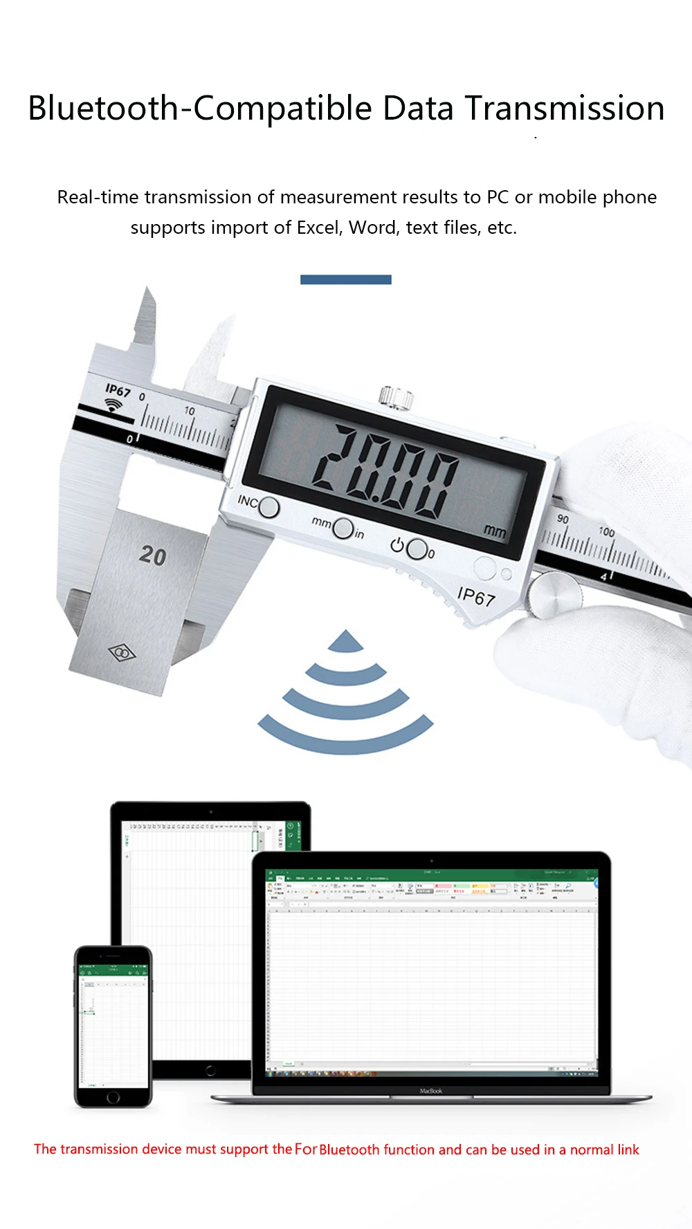 Передача результатов измерений в реальном времени на ПК или мобильный телефон поддерживает Импорт файлов Excel, Word, текстовых файлов и т. д.
