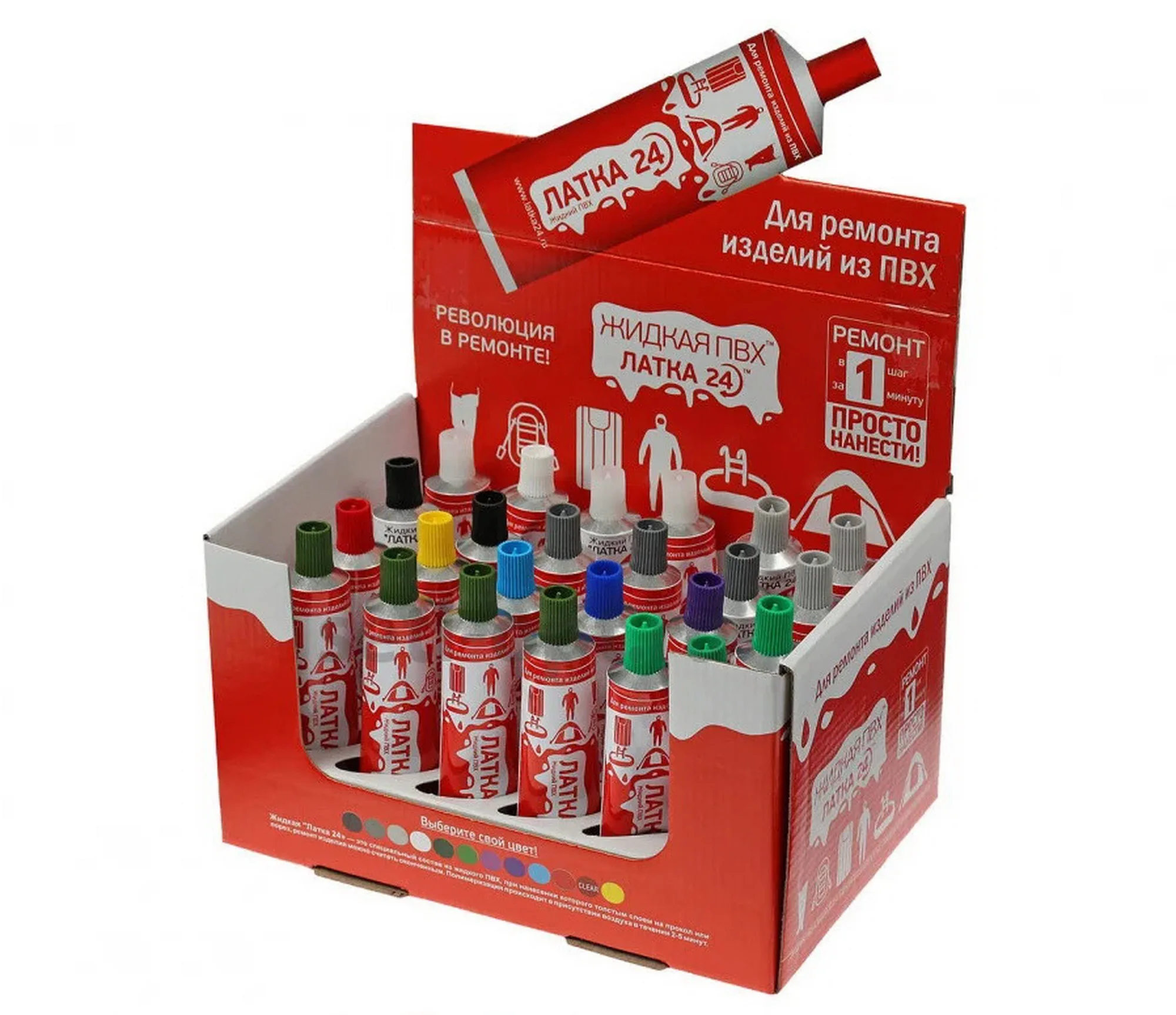 Жидкая латка необходим для ремонта надувных лодок и других изделий из ПВХ,Латка 24 ПВХ жидкая 20 г .
