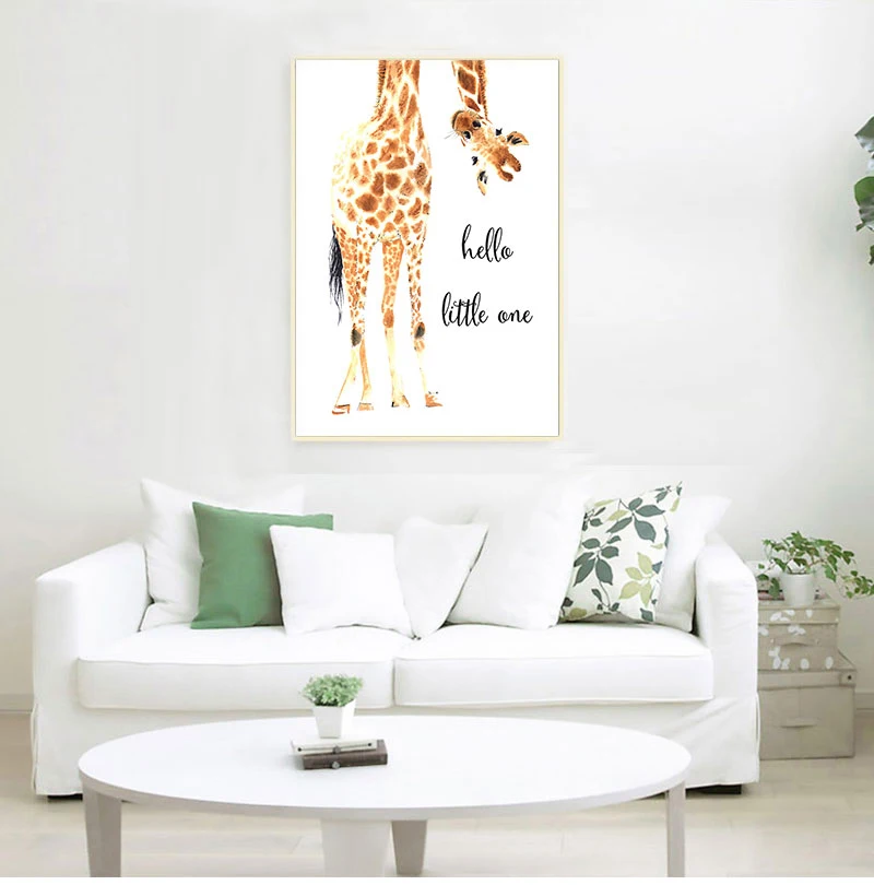 Картина на холсте с изображением жирафа надписью Hello Little One | Дом и сад