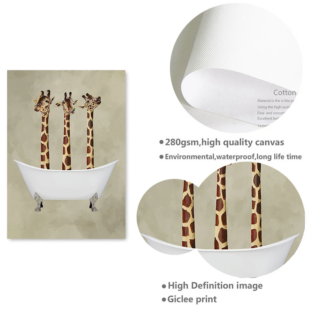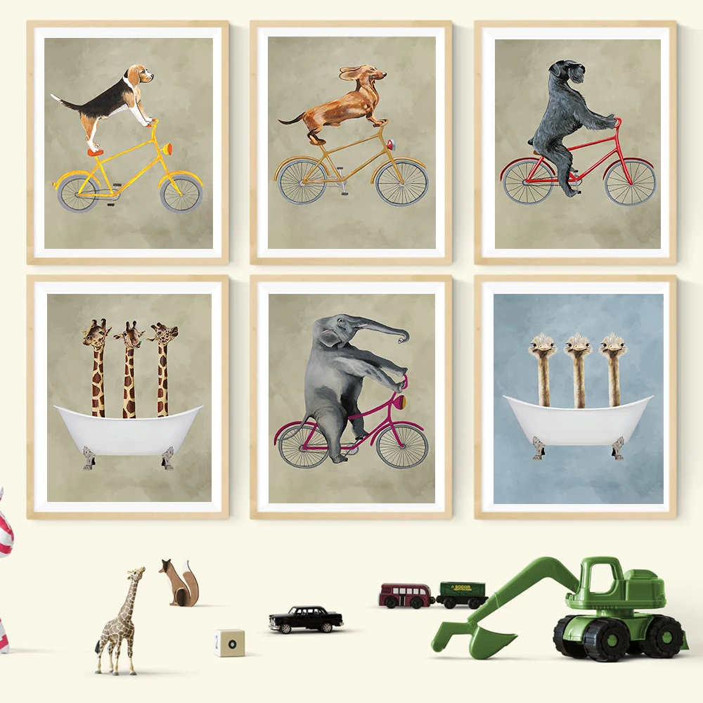 Картина на холсте с изображением животных в скандинавском стиле собака Жираф страус в ванне постер для детской комнаты настенное художественное украшение картины