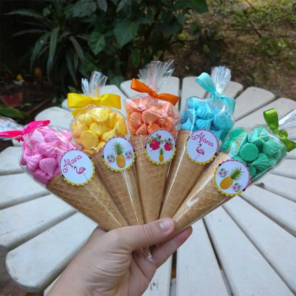 50 шт Прозрачные целлофановые Упаковочные пакеты для свадьбы, дня рождения, рождественской вечеринки, сделай сам мешочек для печенья, конфет, попкорн, пластиковая сумка в виде конуса