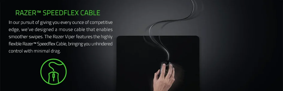 В нашем стремлении предоставить вам каждую унцию конкурентного преимущества, мы разработали кабель для мыши, который позволяет более плавные swipes. Razer Viper отличается высокой гибкостью Razer™Кабель Speedflex обеспечивает беспрепятственное управление с минимальным сопротивлением.