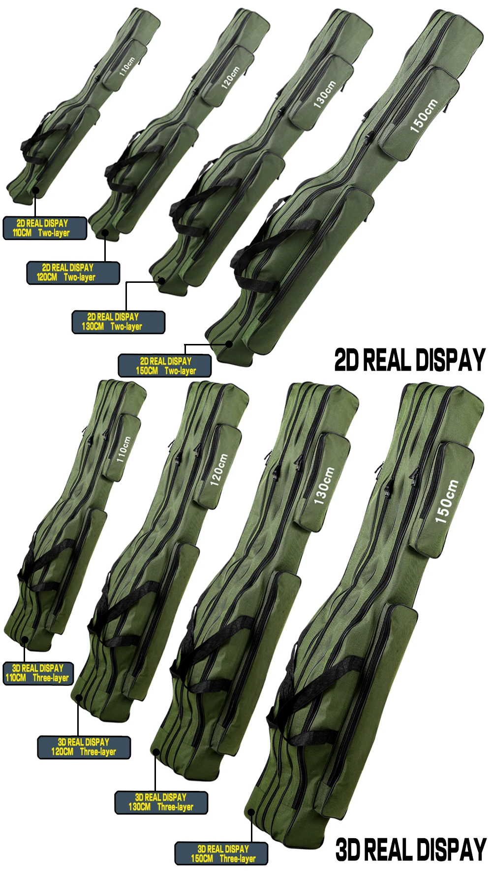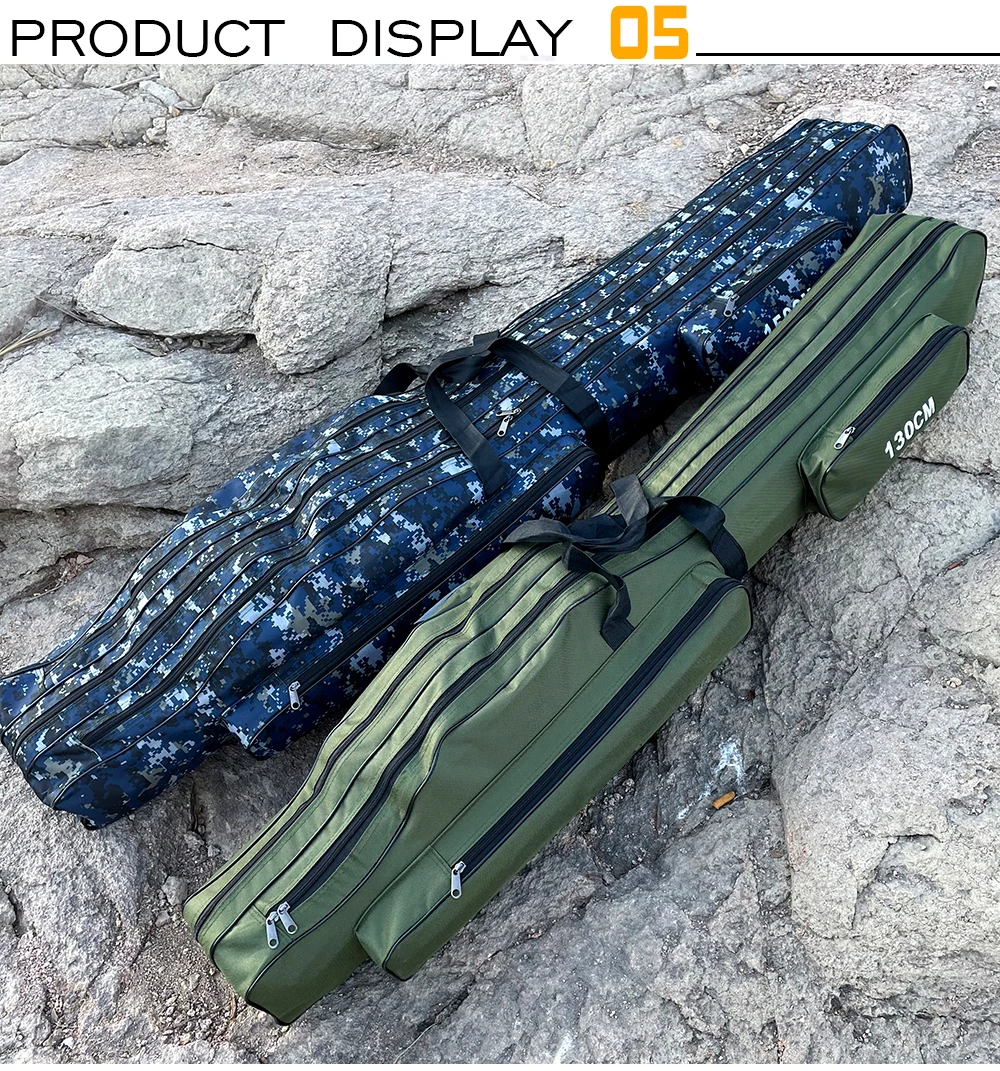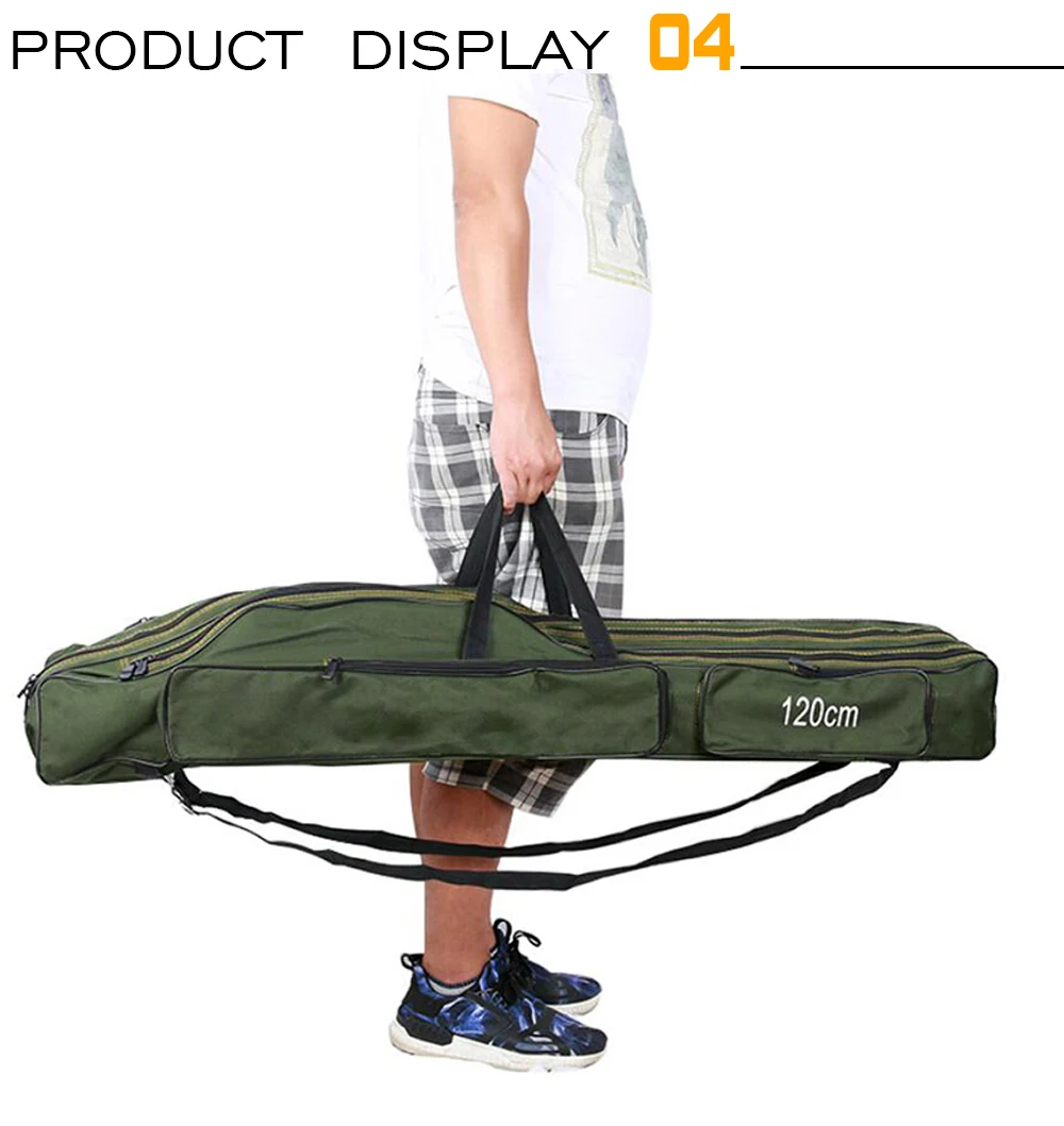 ОсобенностиИзготовлен из холста, водостойкий и износостойкий, очень прочный.Он содержит два или три основных отсека с боковыми мешочками.Большая емкость и регулируемые ремни, удобные и портативные.Замечательный компаньон для рыболовов.Технические характеристикиМатериал: 1280D холстЦвет: зеленый/синий (на выбор)Слой: два/три (по желанию)Длина: 110 см/120 см/130 см/150 см (опционально)Список посылка1 шт. * Рыболовная Сумка
