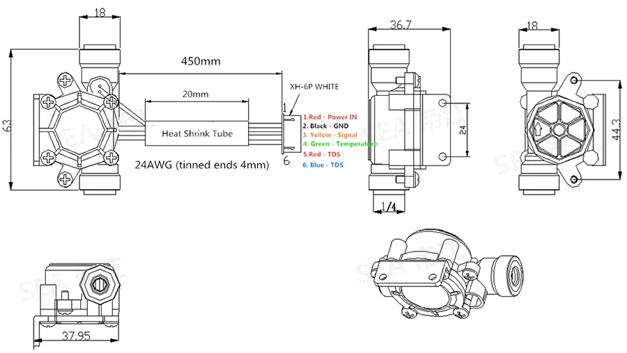 Датчик расхода водыВ основном состоит из корпуса клапана pom, ротора в сборе и датчика холла. Он устанавливается на входе воды для обнаружения потока воды. Когда поток воды через ротор в сборе, ротор будет вращаться, и скорость будет меняться по мере расхода. Датчик Холла выводит электрический импульс с каждым вращением и отзывы на контроллер/расходомер. Подходит для обнаружения потока в кофе, воде, пиве, RO фильтрующих машинах.