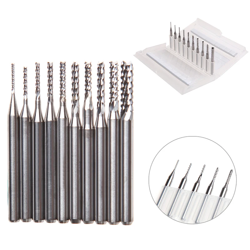 10 шт. 1/8 ''0,8-3,175 мм сверла биты для гравировки резак роторная PCB CNC Концевая мельница набор