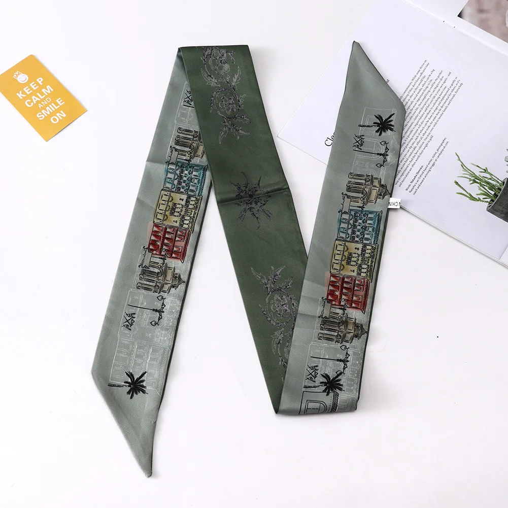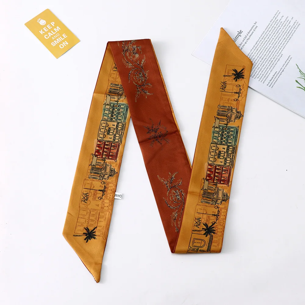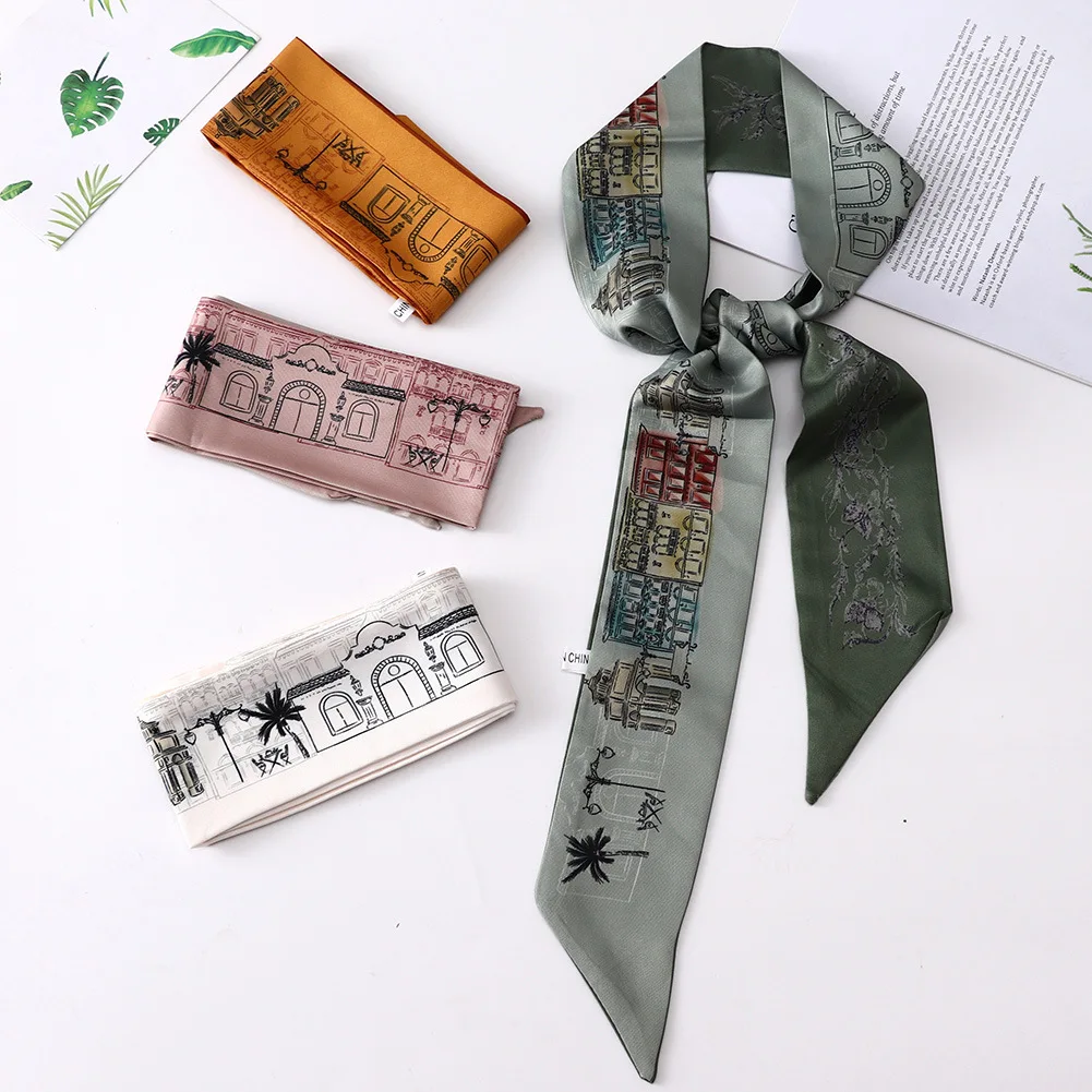 Новинка 2021, дизайнерская женская Бандана с длинными узкими волосами, женский шарф с цветочным принтом, шарфы с ручками для шеи Bufandas De Mujer