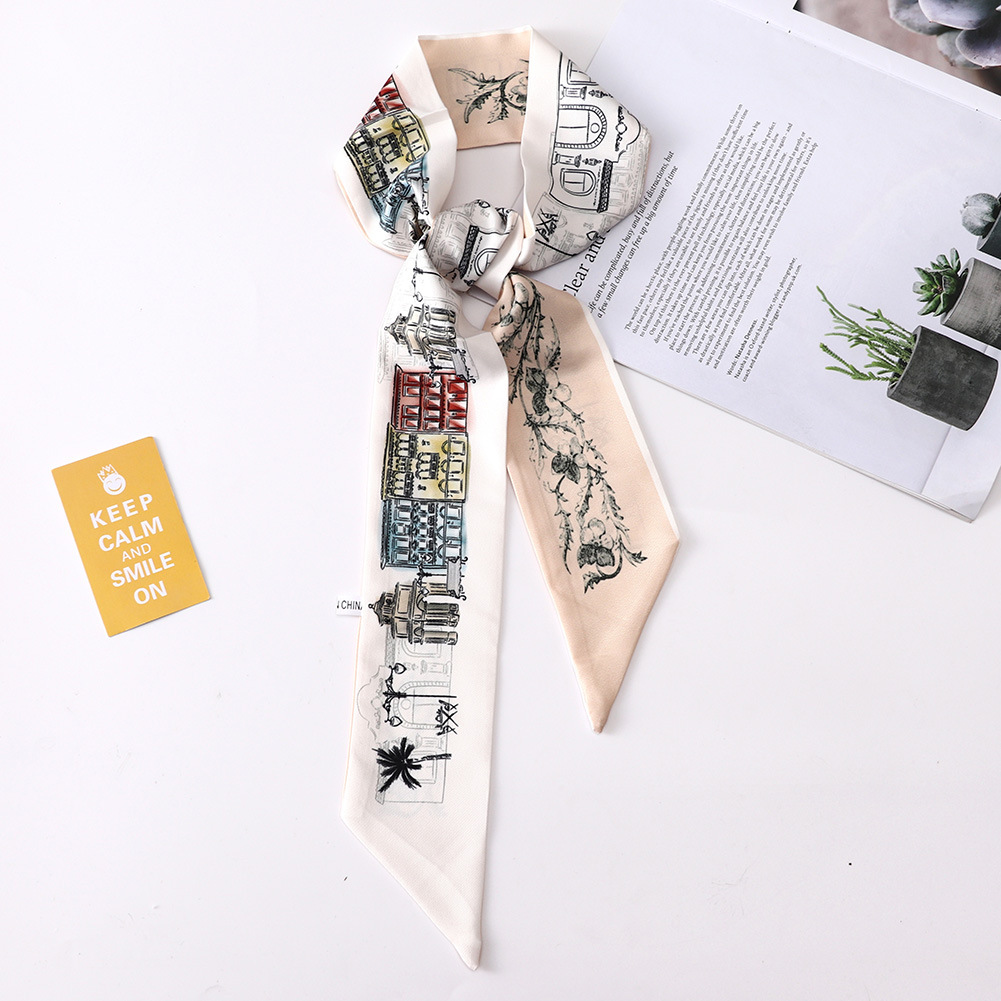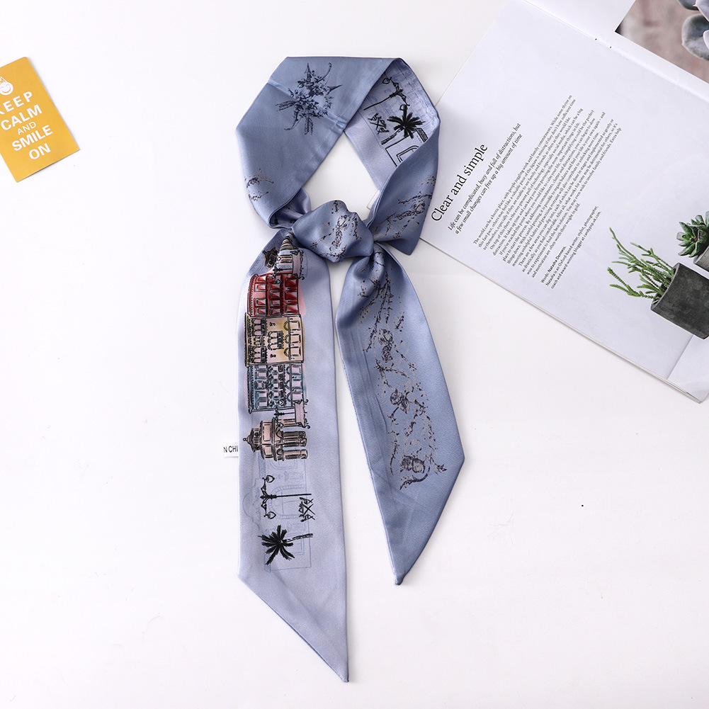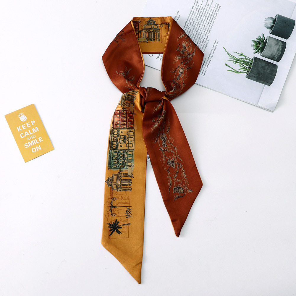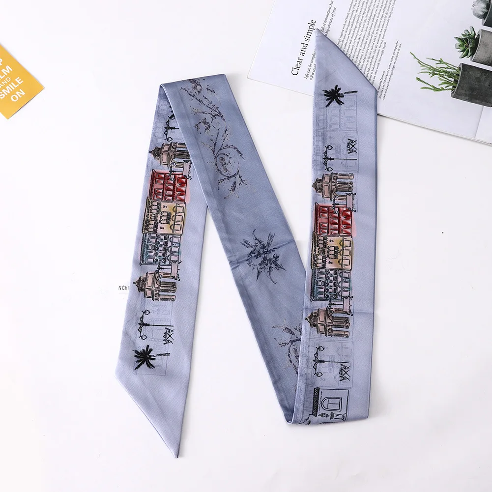 Новинка 2021, дизайнерская женская Бандана с длинными узкими волосами, женский шарф с цветочным принтом, шарфы с ручками для шеи Bufandas De Mujer