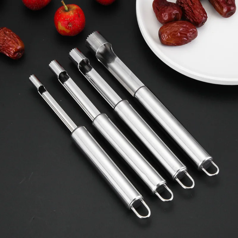 1. Несколько размеров: это 5 разных размеров в ручной core, съемники, диаметром 0,24 дюйма, 0,32 дюйма, 0,4 дюйма, 0,55 дюйма и 0,79 дюйма, и длина ядра составляет около 1. 7,87 дюйма/20 см, различные размеры, могут удовлетворить ваши потребности в обработке различных фруктов