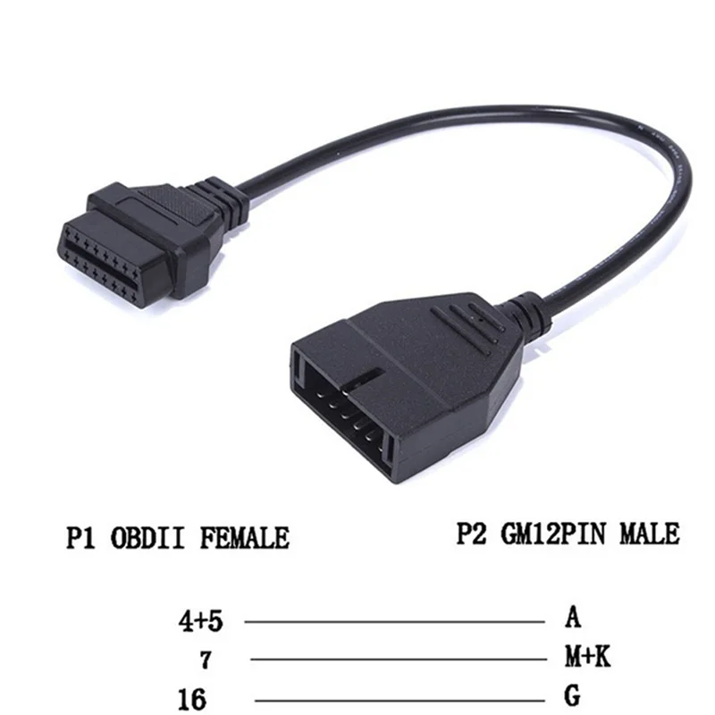 Соединяет телефон 16 контактный разъем OBD 2 инструменту диагностики, а также для gm автомобиля, украшенное мозаикой из драгоценных камней, 12 контактный разъем. Работает со всеми автомобилями gm & Daewoo, сделанными после 1996 года с 12 контактным диагностическим разъемом.