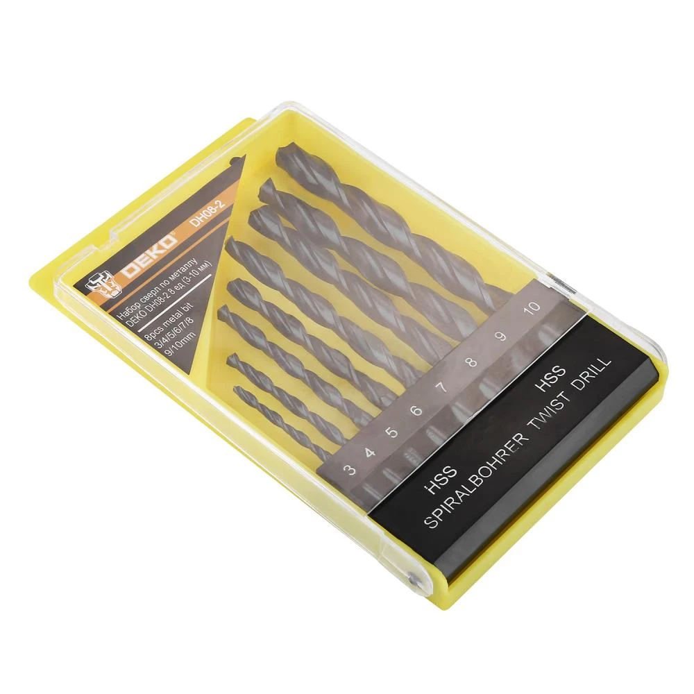 Набор сверл по металлу DEKO DH08-2. В наборе 8 сверл диаметром 3, 4, 5, 6, 7, 8, 9, 10мм.