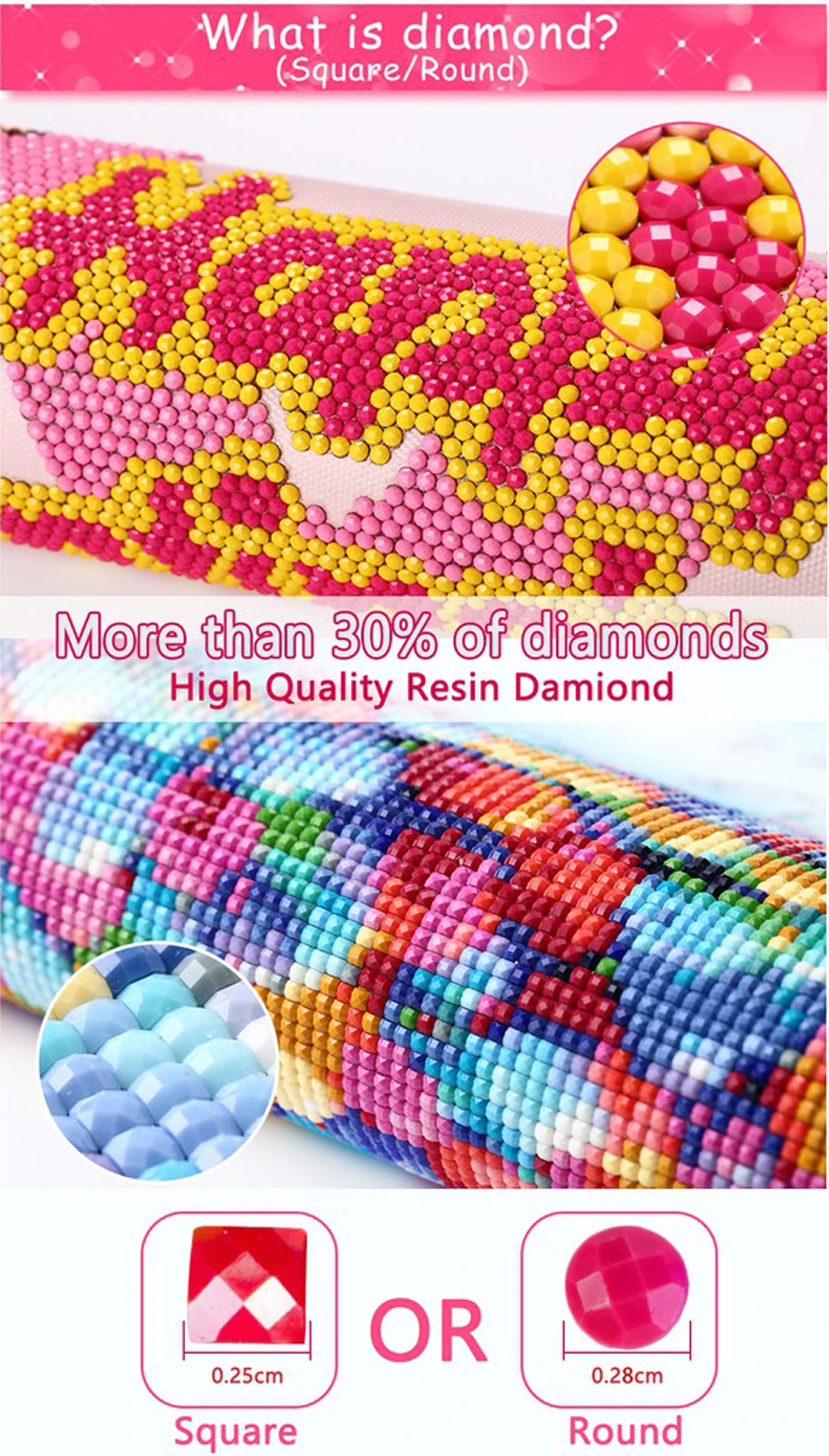 Круглые драгоценные камни-из цветного акрила, приносит блестящие 3D эффекты. Линии не должны быть выровнены в процессе укладки. После завершения не будет никаких неровностей. Расположение быстрее, потому что в наборе есть карандаши.