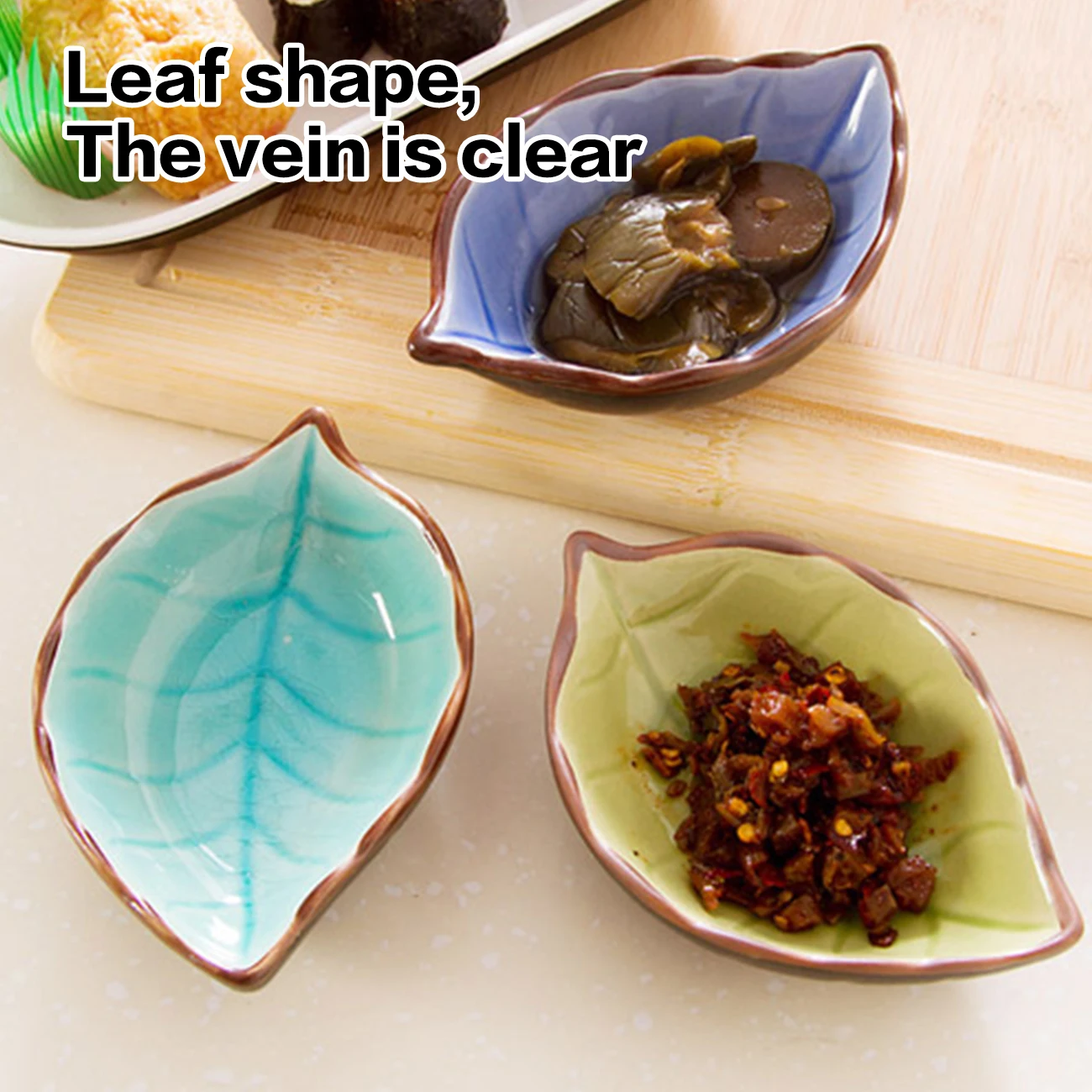 Основная информация: Название продукта: приправа Размер и вес: 11*7*3 см, 130 г Цвет и характеристики: лист голубого цвета, лист темно-синего цвета, лист желтого цвета, лист зеленого цвета Материал: керамика Использование: посуда, тарелки для еды, посуда, кухонные тарелки, керамические тарелки, тарелки для суши, поднос для еды, сахарница для кухни, блюдо для масла, Сервировочные блюда, японские блюда, японские закуски.