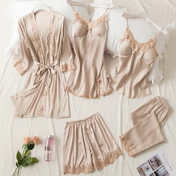 Благородная Женская бархатная Пижама 4 шт. однотонная кружевная ночная рубашка