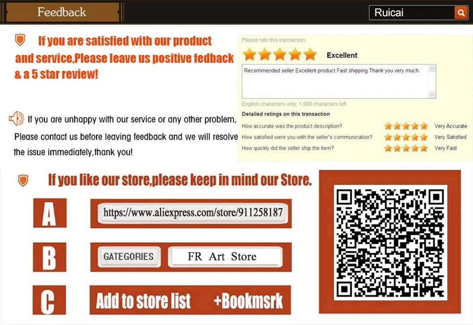 Магазина FR Art Store работает с 19.12.2020. его рейтинг составлет 89.61 баллов из 100. В избранное добавили 175 покупателя. Средний рейтинг торваров продавца 4.5 в продаже представленно 1001 наименований товаров, успешно доставлено 165 заказов. 231 покупателей оставили отзывы о продавце.