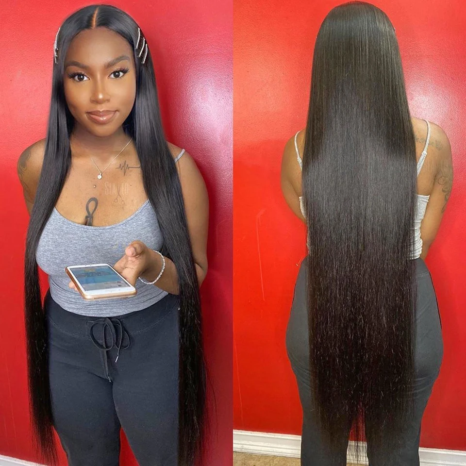 KISSU 30, 32, 34, 36 дюймов, прямой парик с кружевом спереди, 4x4, парик на шнурке, бразильский парик с кружевом спереди, длинные человеческие волосы, парики для женщин